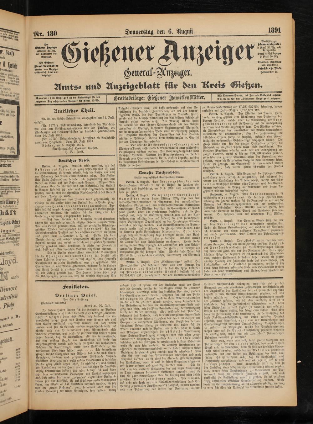 Gießener Anzeiger. 1868-1943