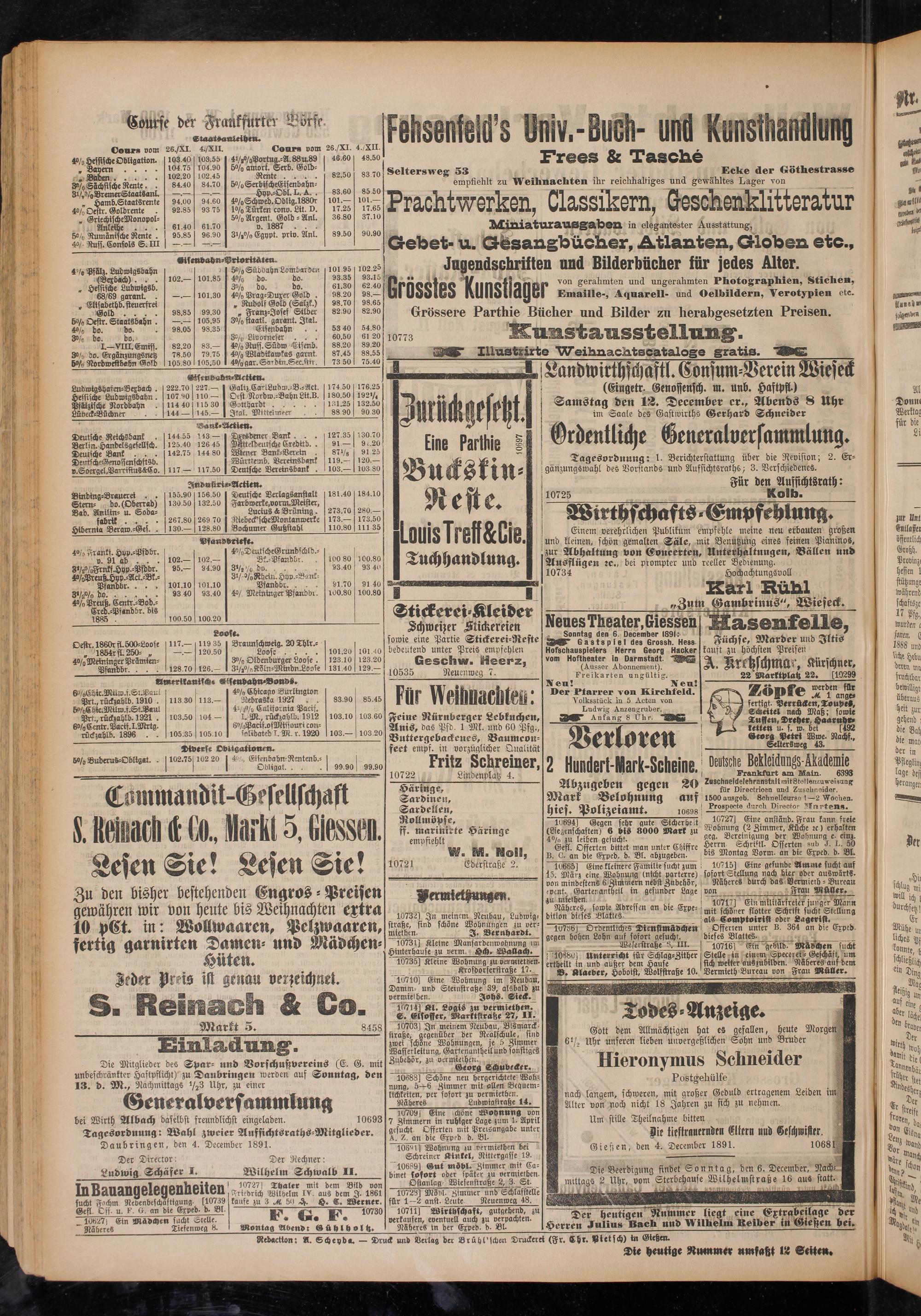 6.12.1891 Erstes Blatt