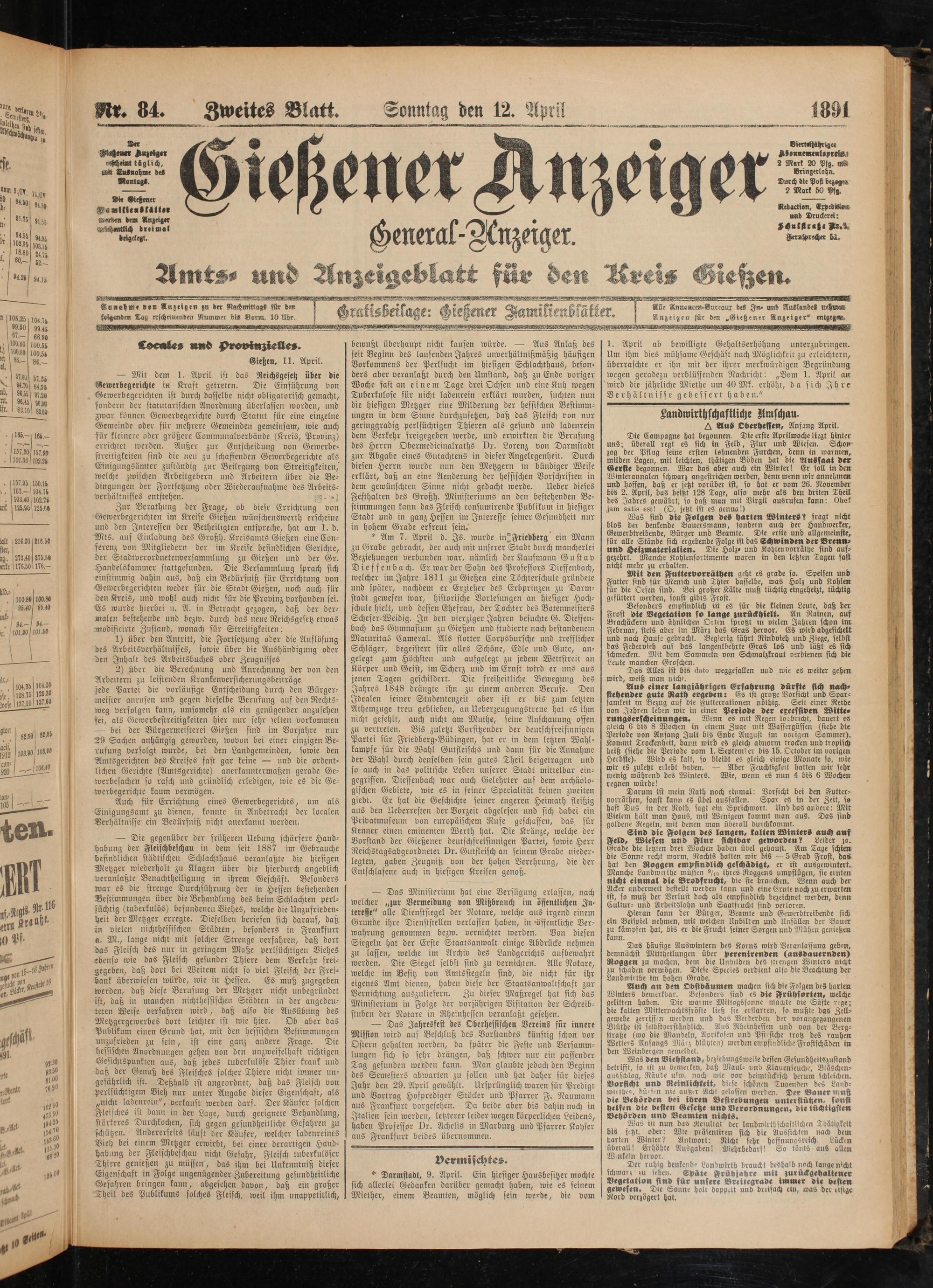 12.4.1891 Zweites Blatt