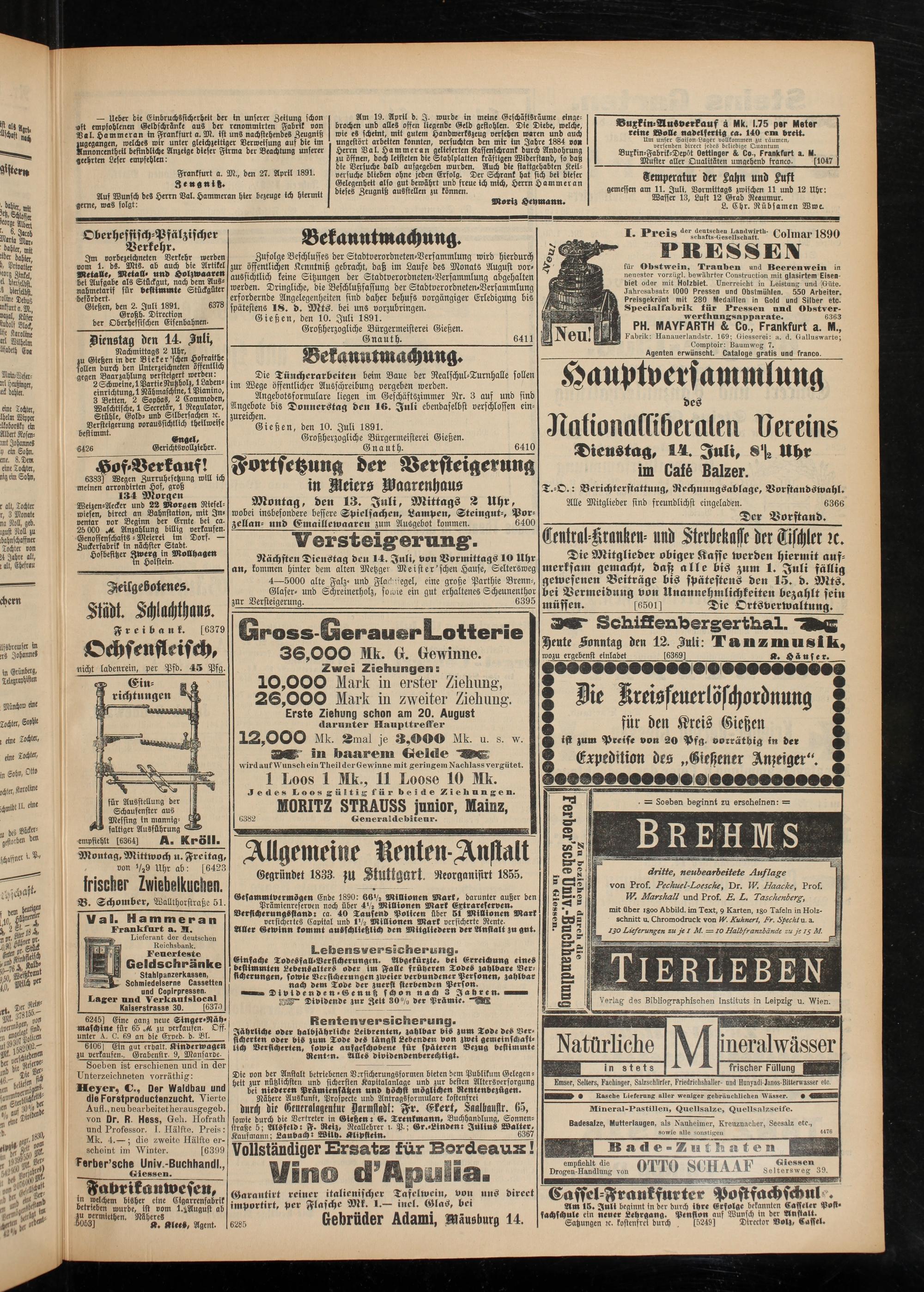 12.7.1891 Erstes Blatt