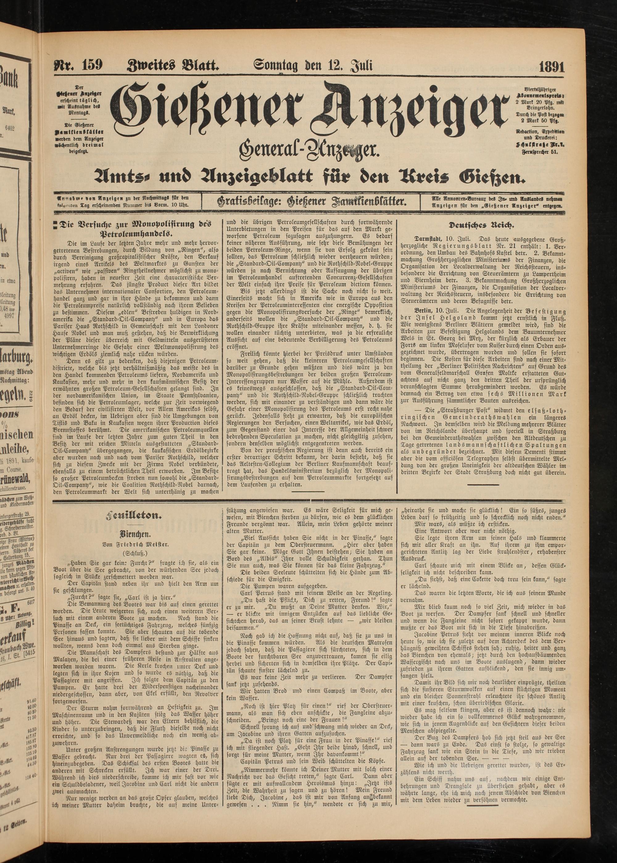 12.7.1891 Zweites Blatt