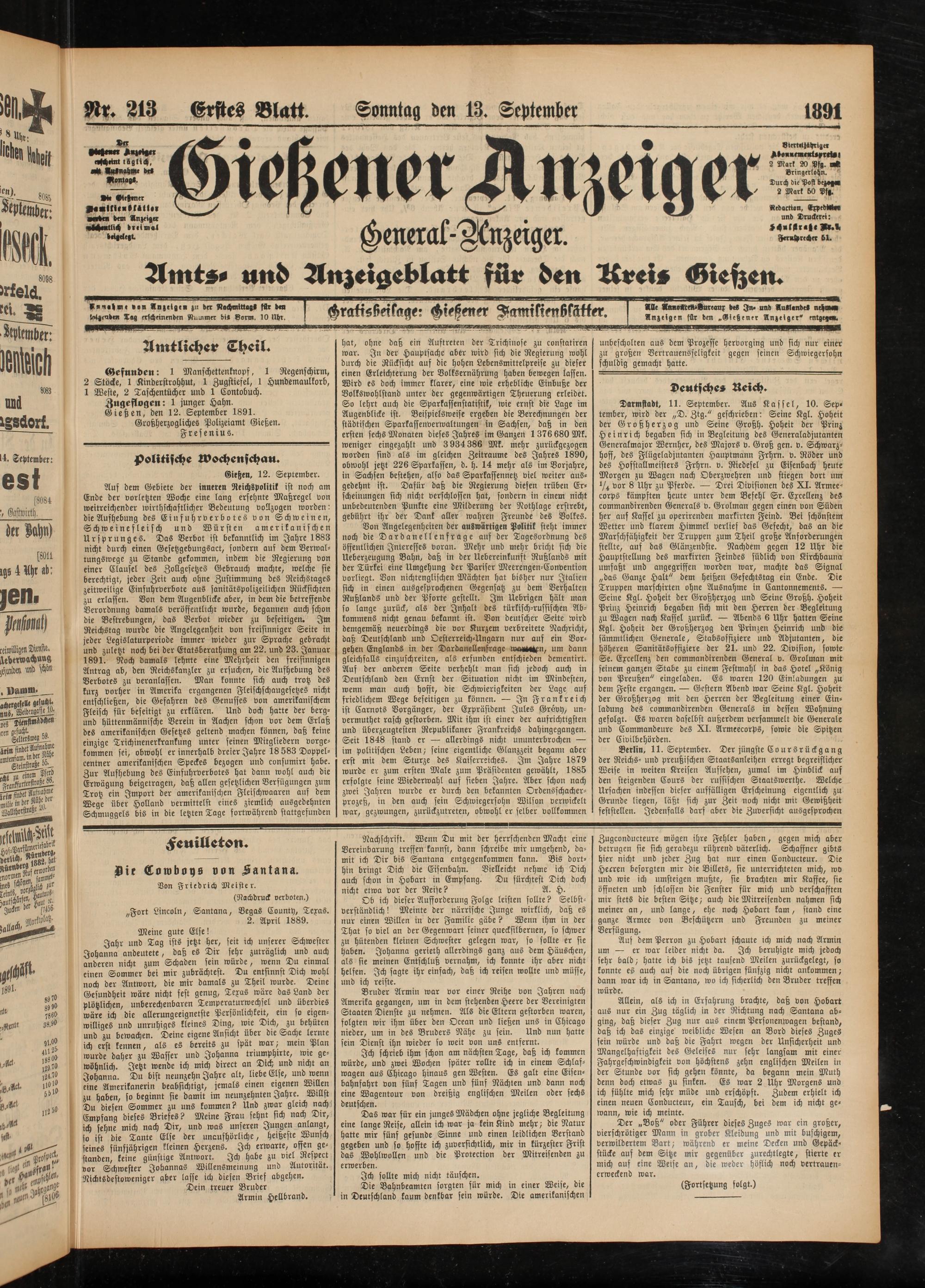 13.9.1891 Erstes Blatt