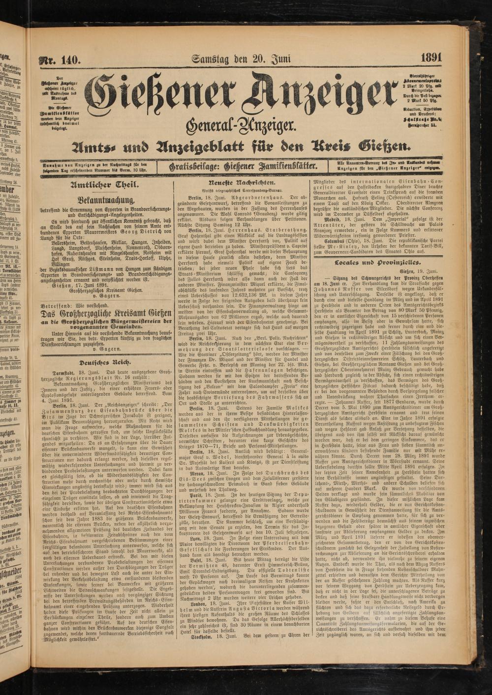 Gießener Anzeiger. 1868-1943