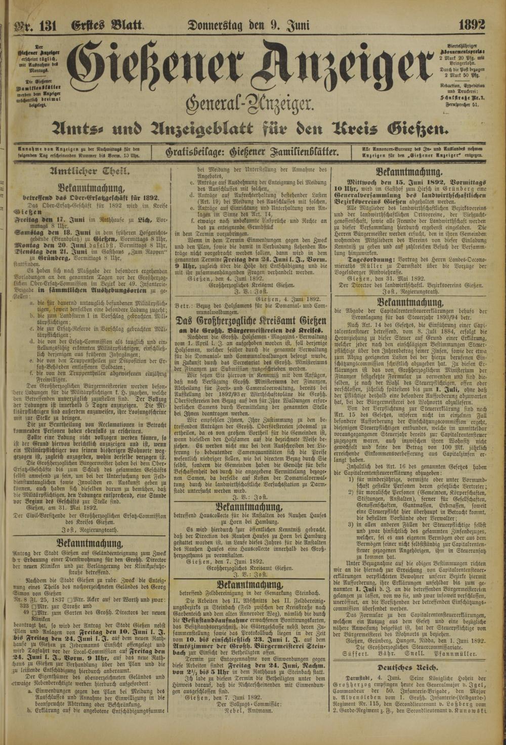 Gießener Anzeiger. 1868-1943