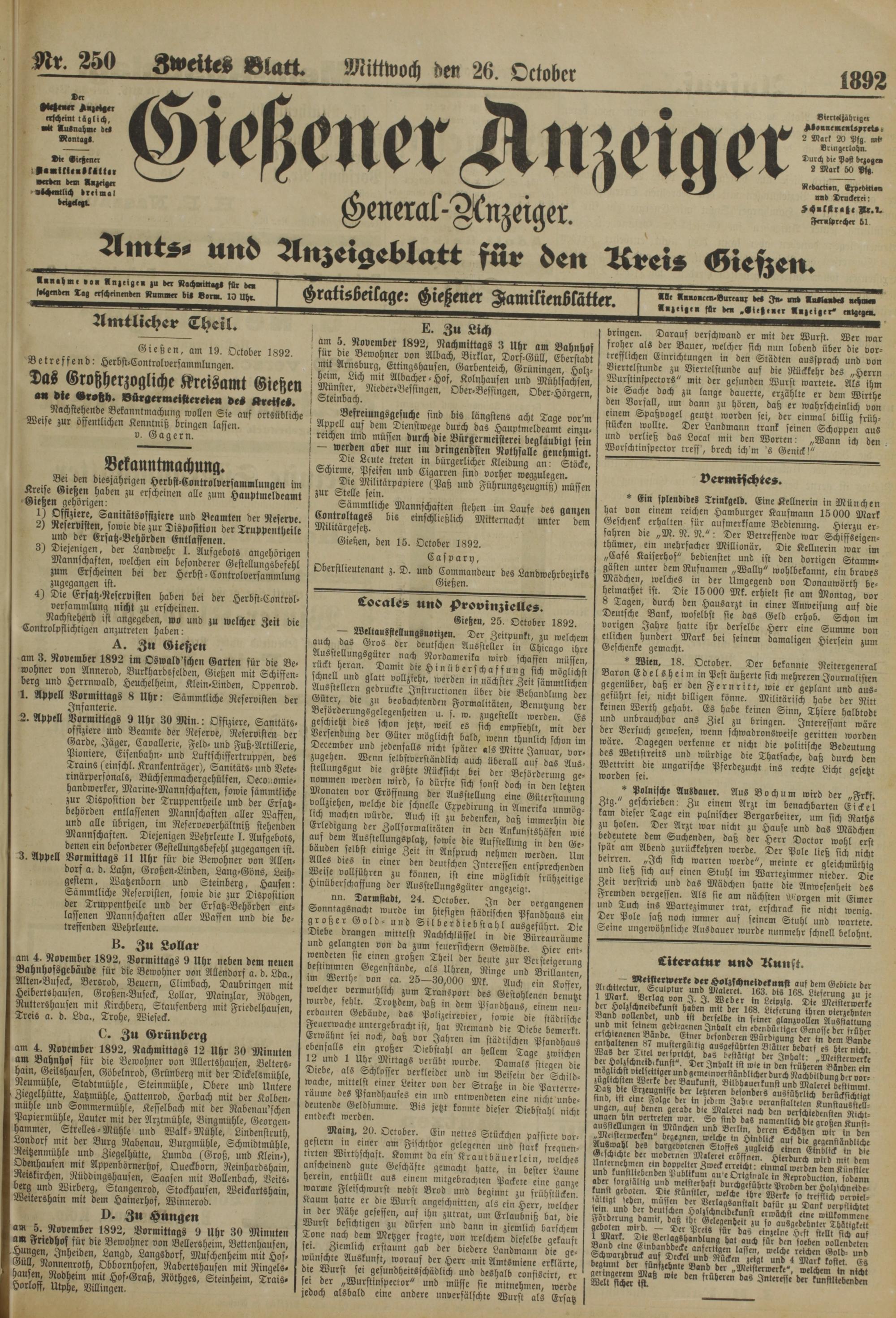 26.10.1892 Zweites Blatt