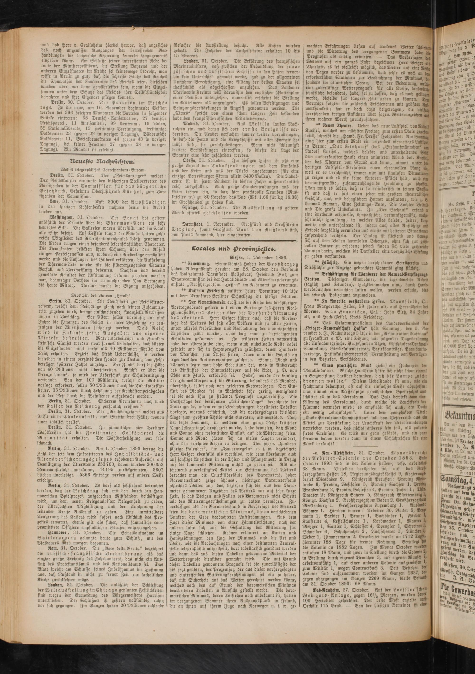 2.11.1893 Erstes Blatt