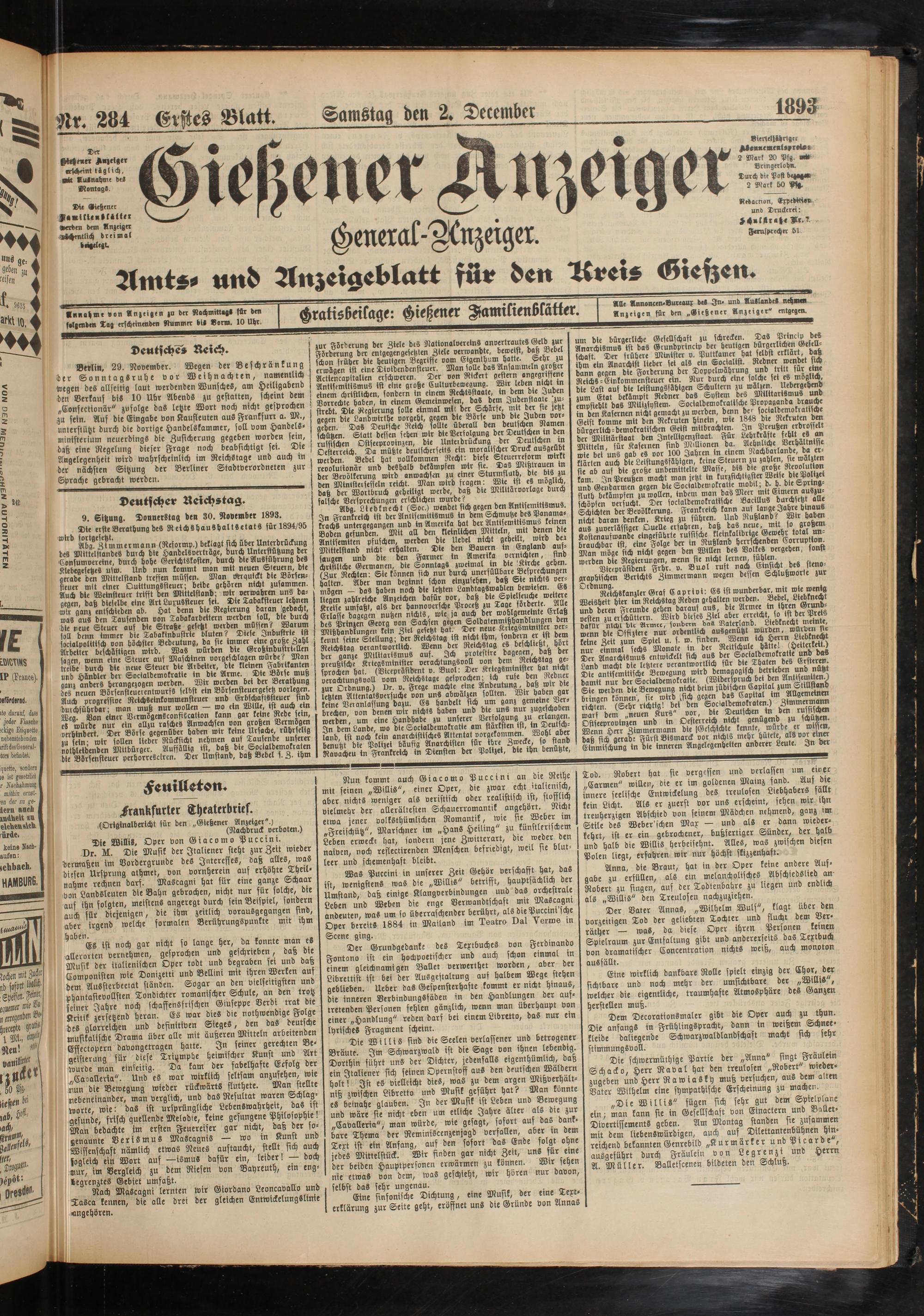 2.12.1893 Erstes Blatt