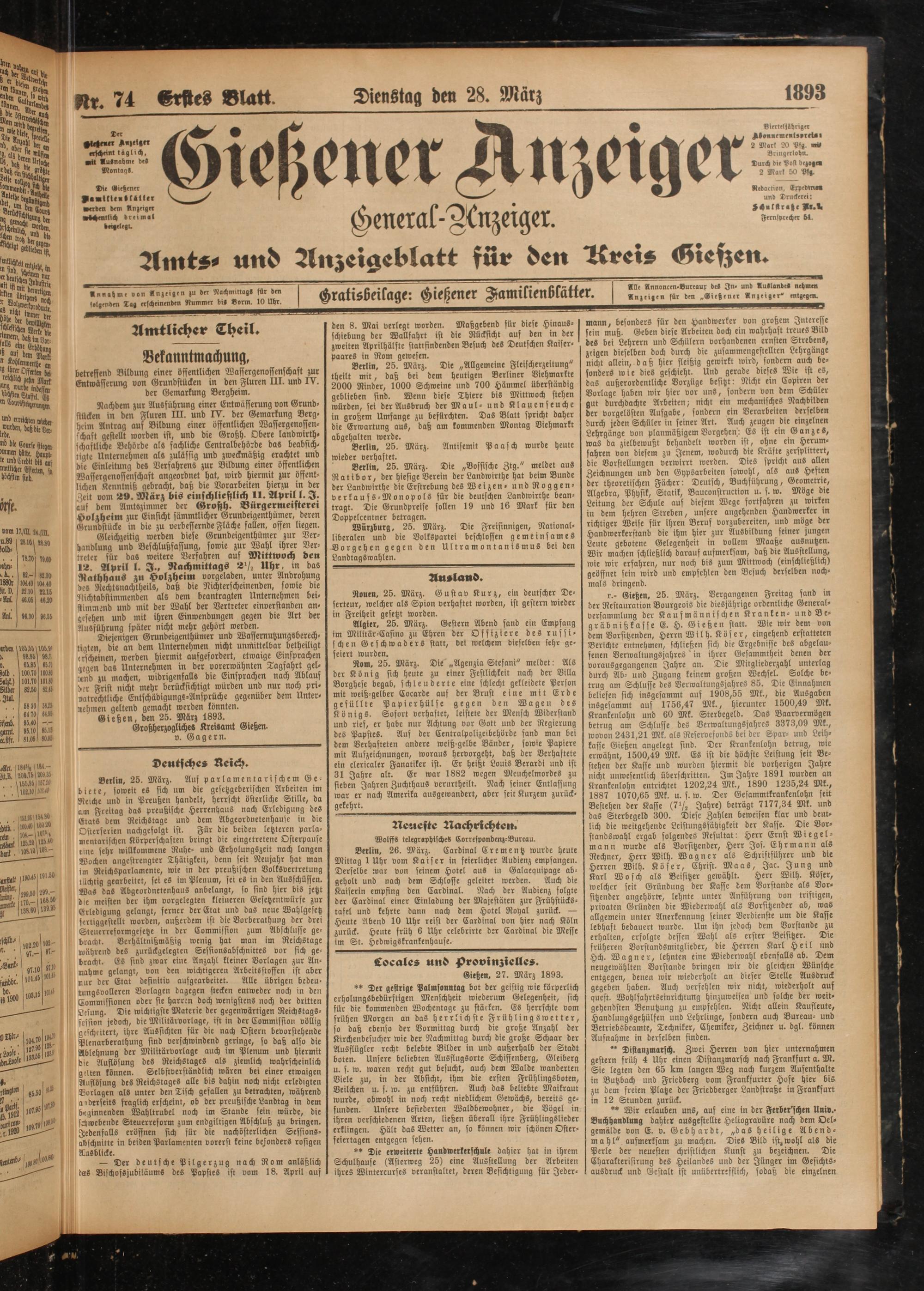 28.3.1893 Erstes Blatt