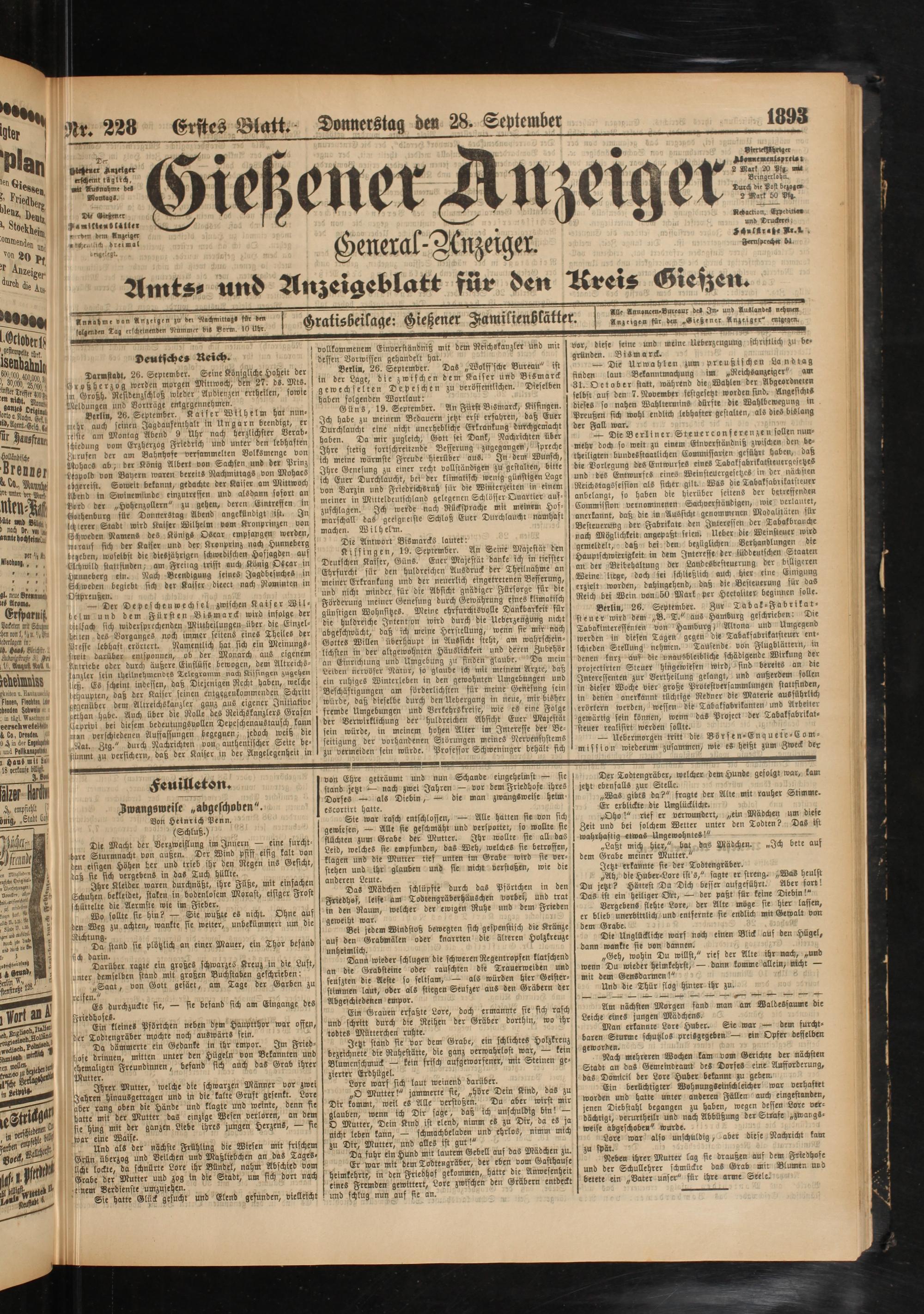 28.9.1893 Erstes Blatt