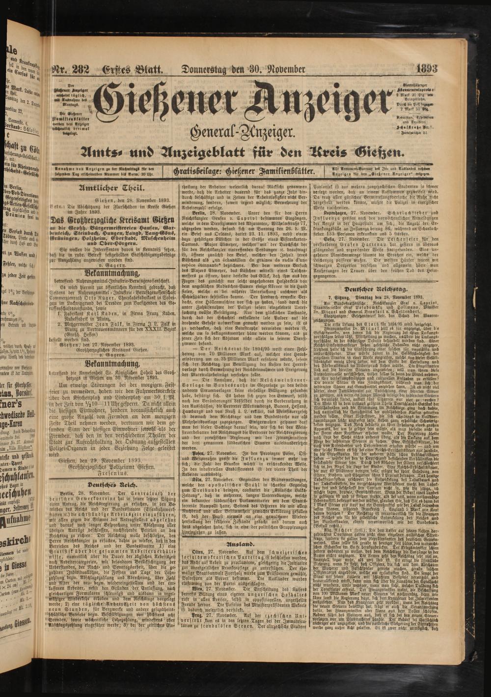 30.11.1893 Erstes Blatt