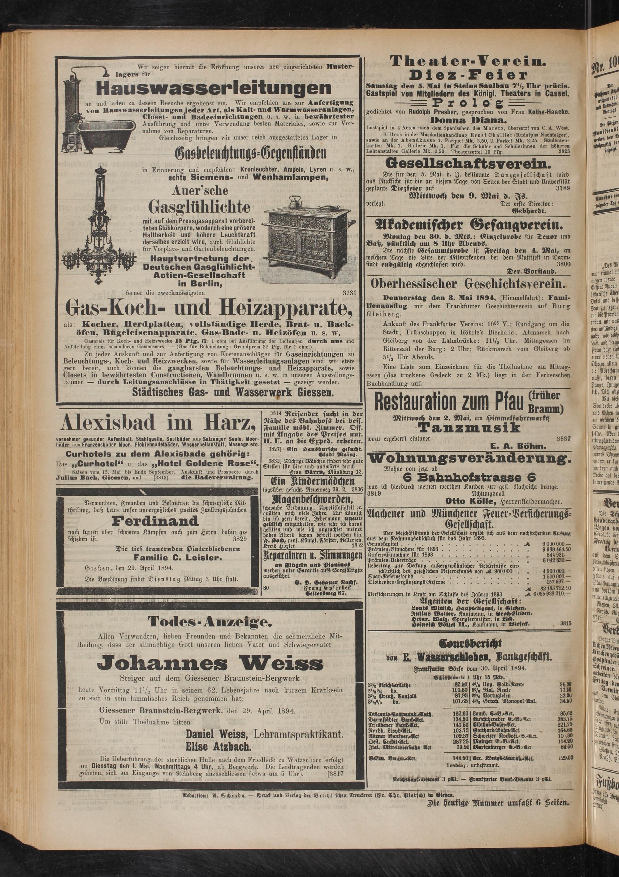 1.5.1894 Erstes Blatt