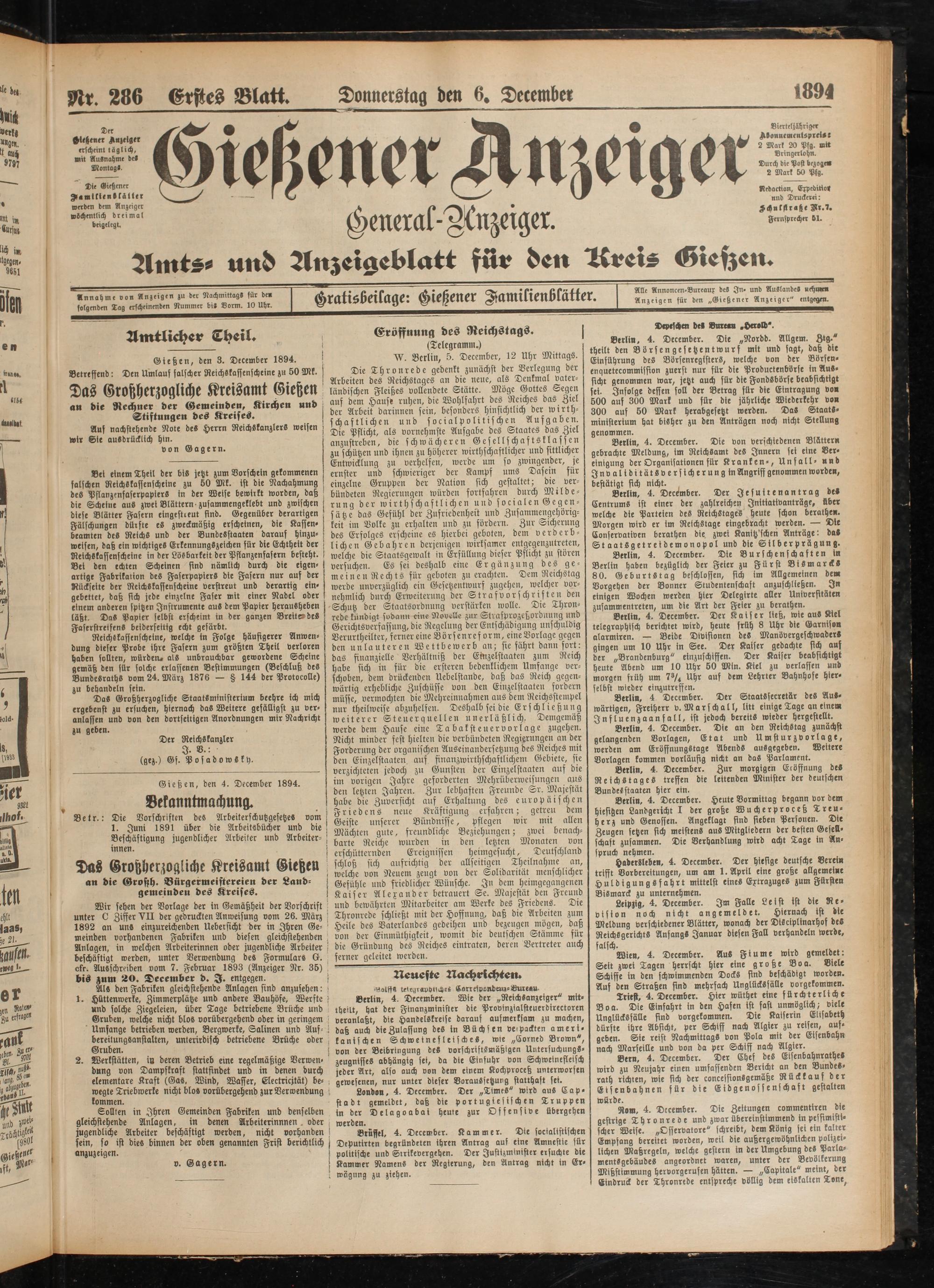 6.12.1894 Erstes Blatt