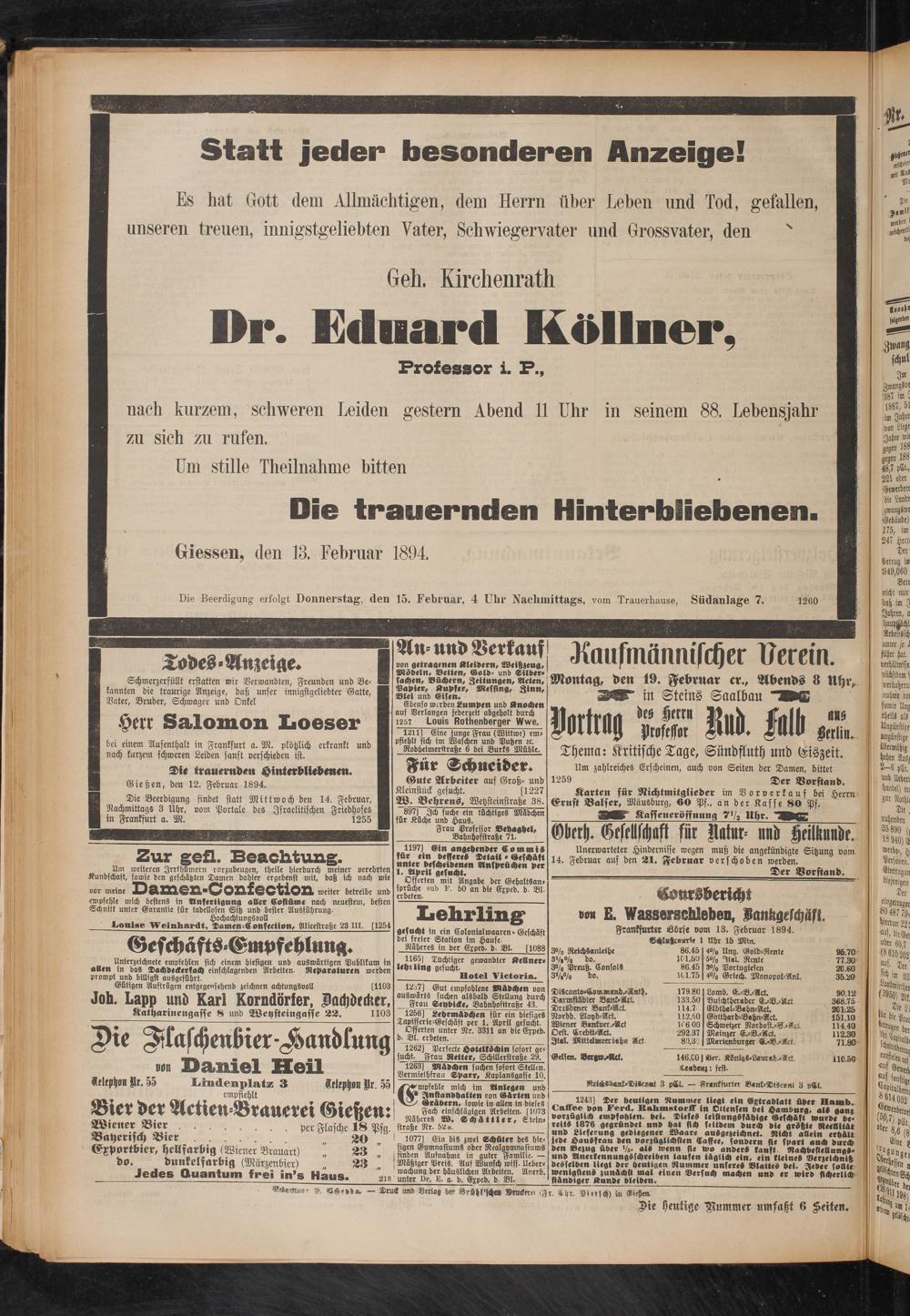 14.2.1894 Erstes Blatt