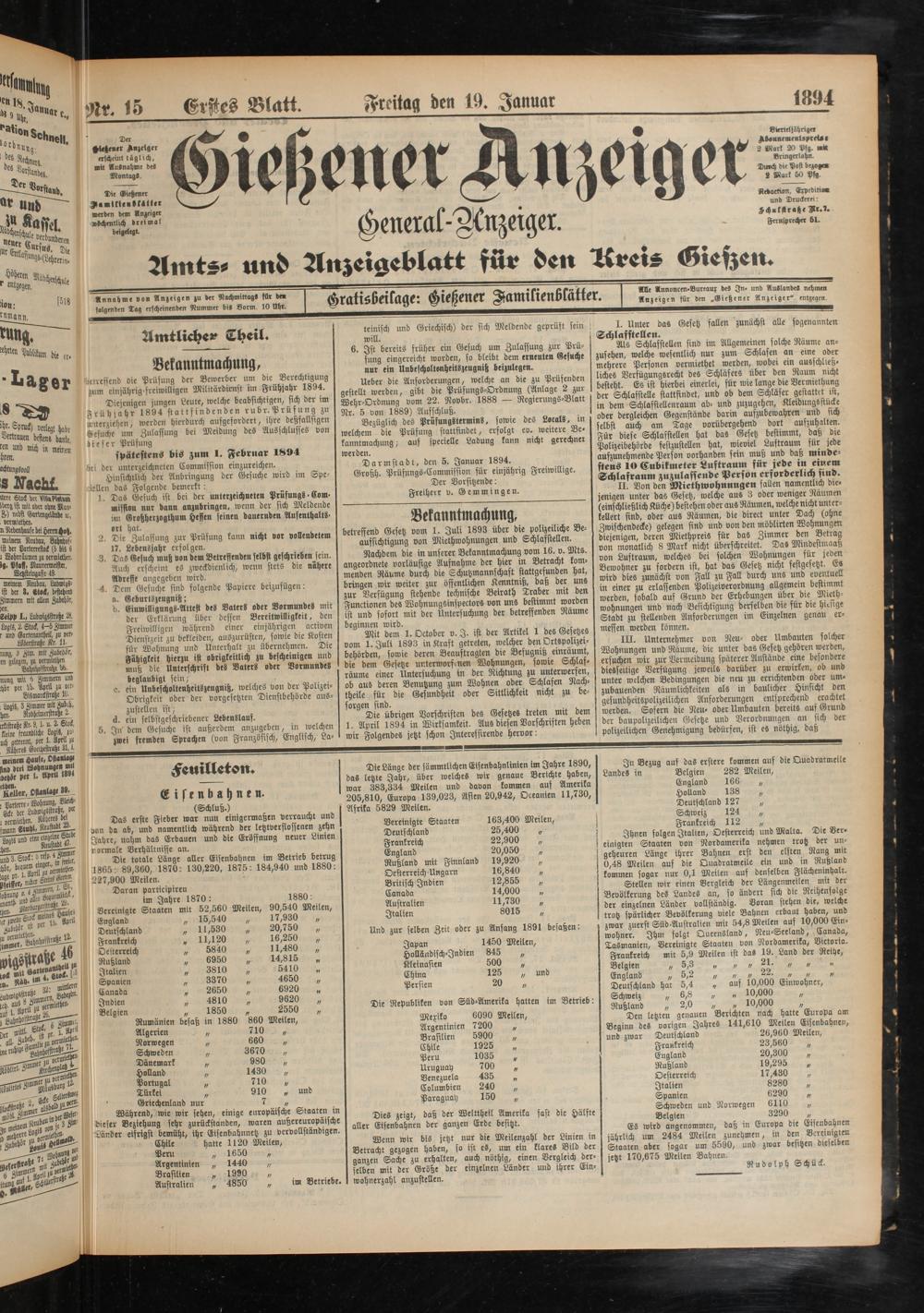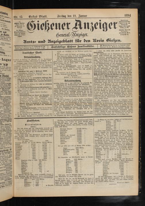 19.1.1894 Erstes Blatt