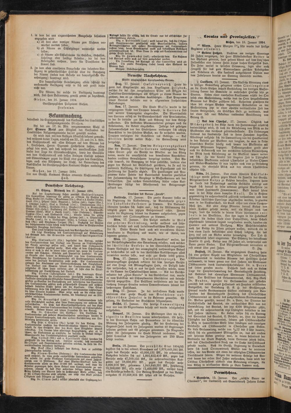 19.1.1894 Erstes Blatt