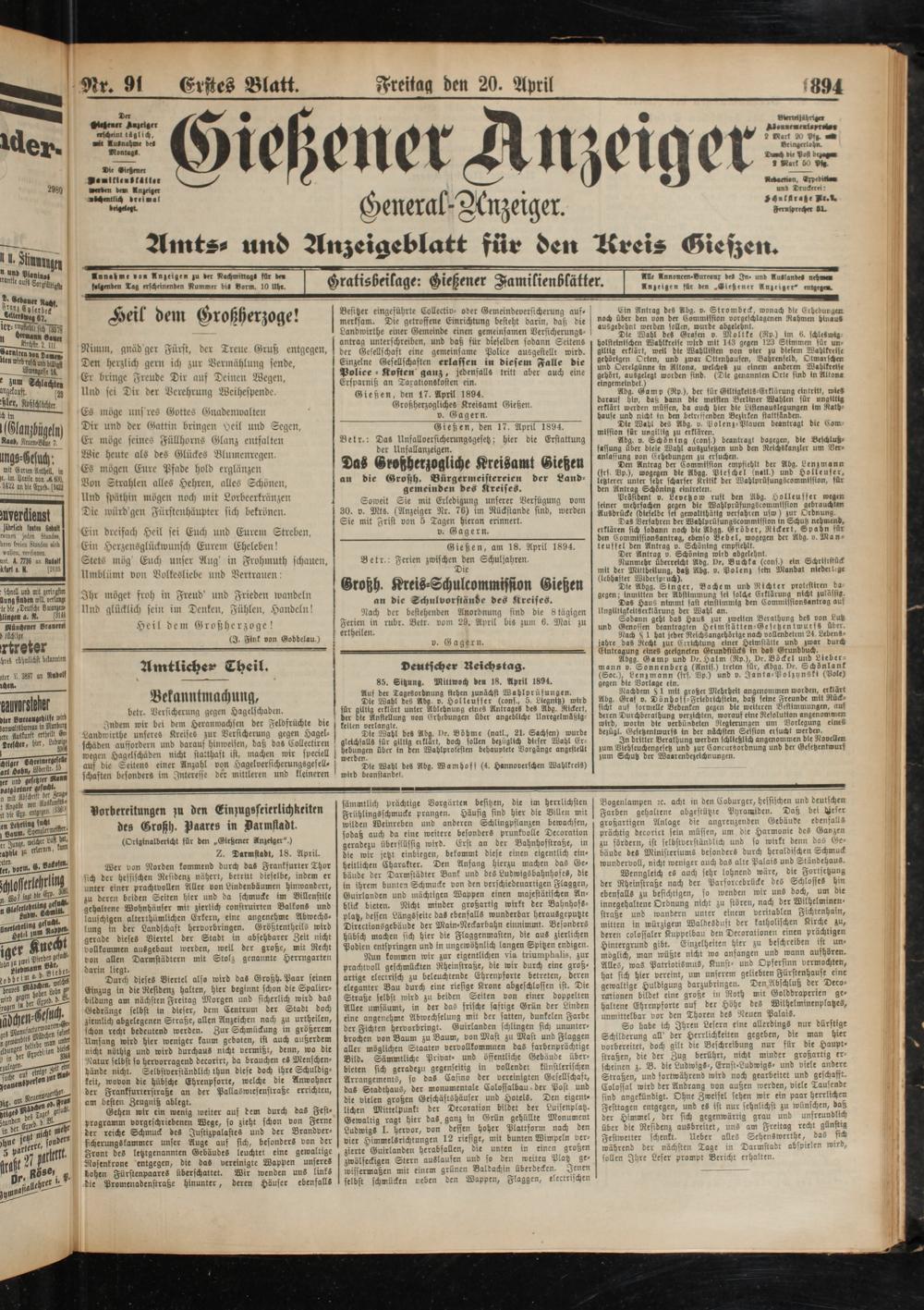 20.4.1894 Erstes Blatt