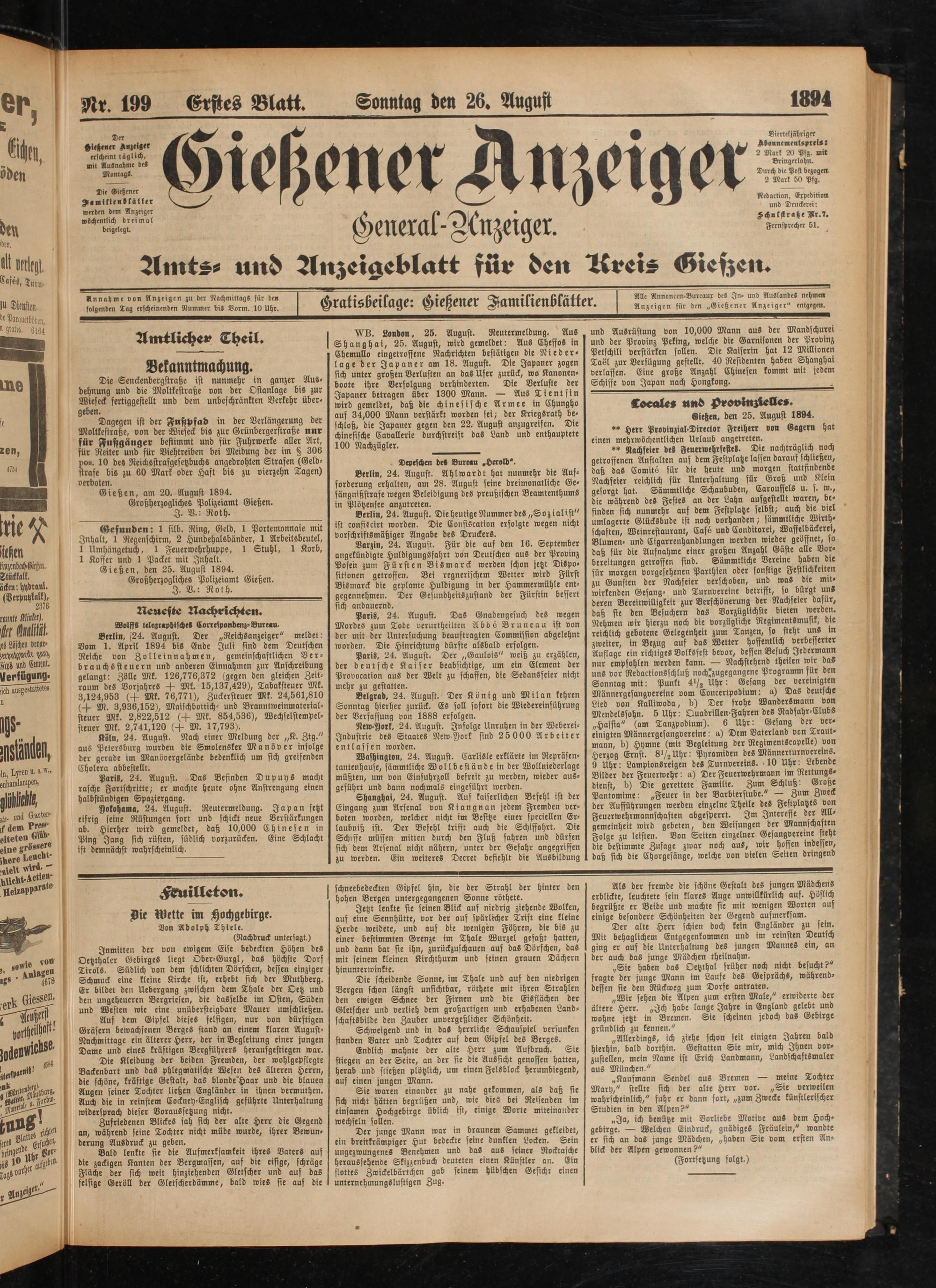26.8.1894 Erstes Blatt