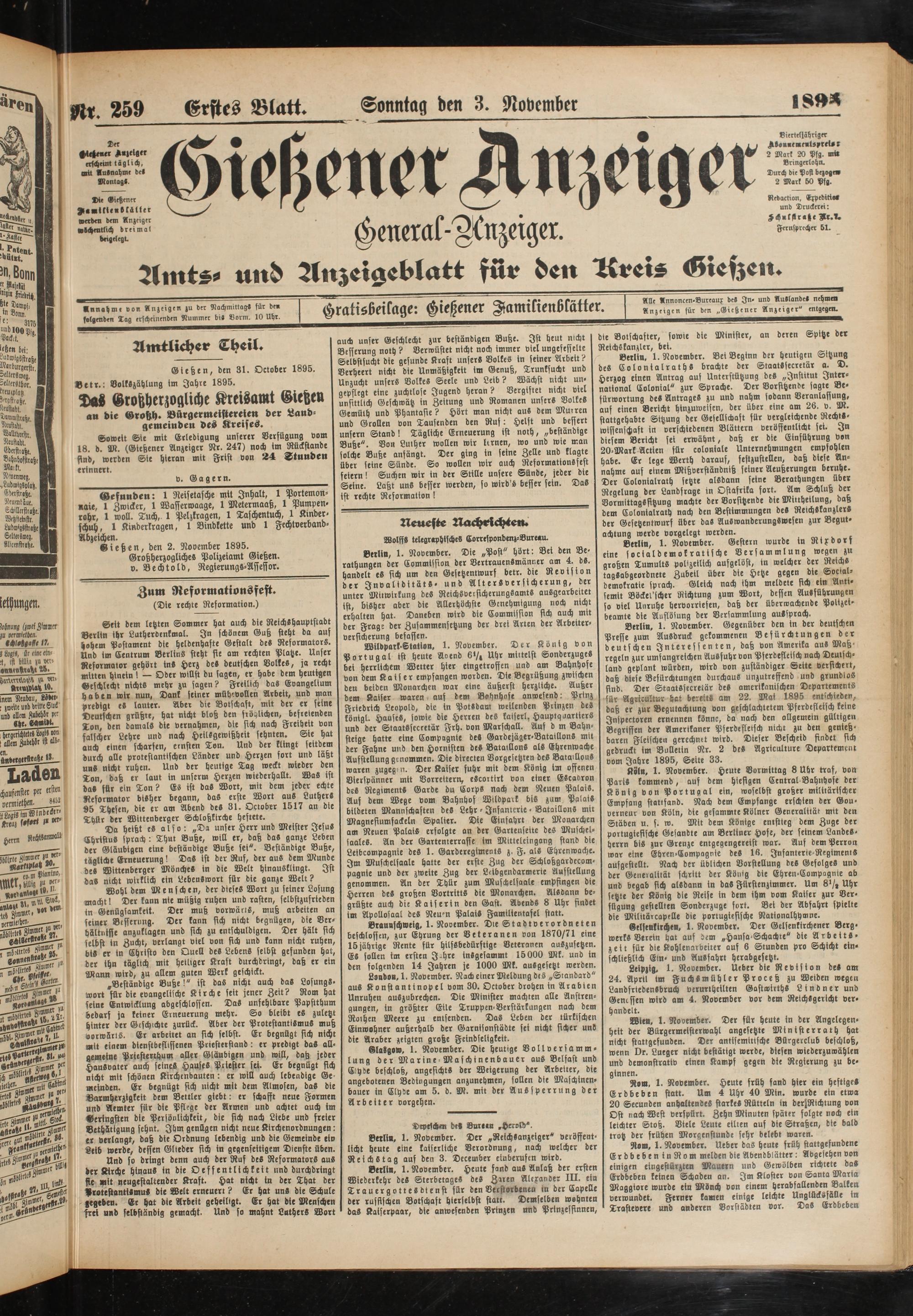 3.11.1895 Erstes Blatt