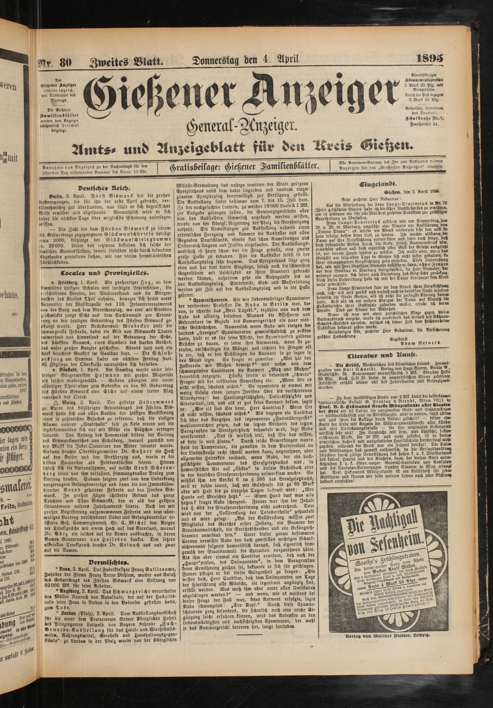 4.4.1895 Zweites Blatt