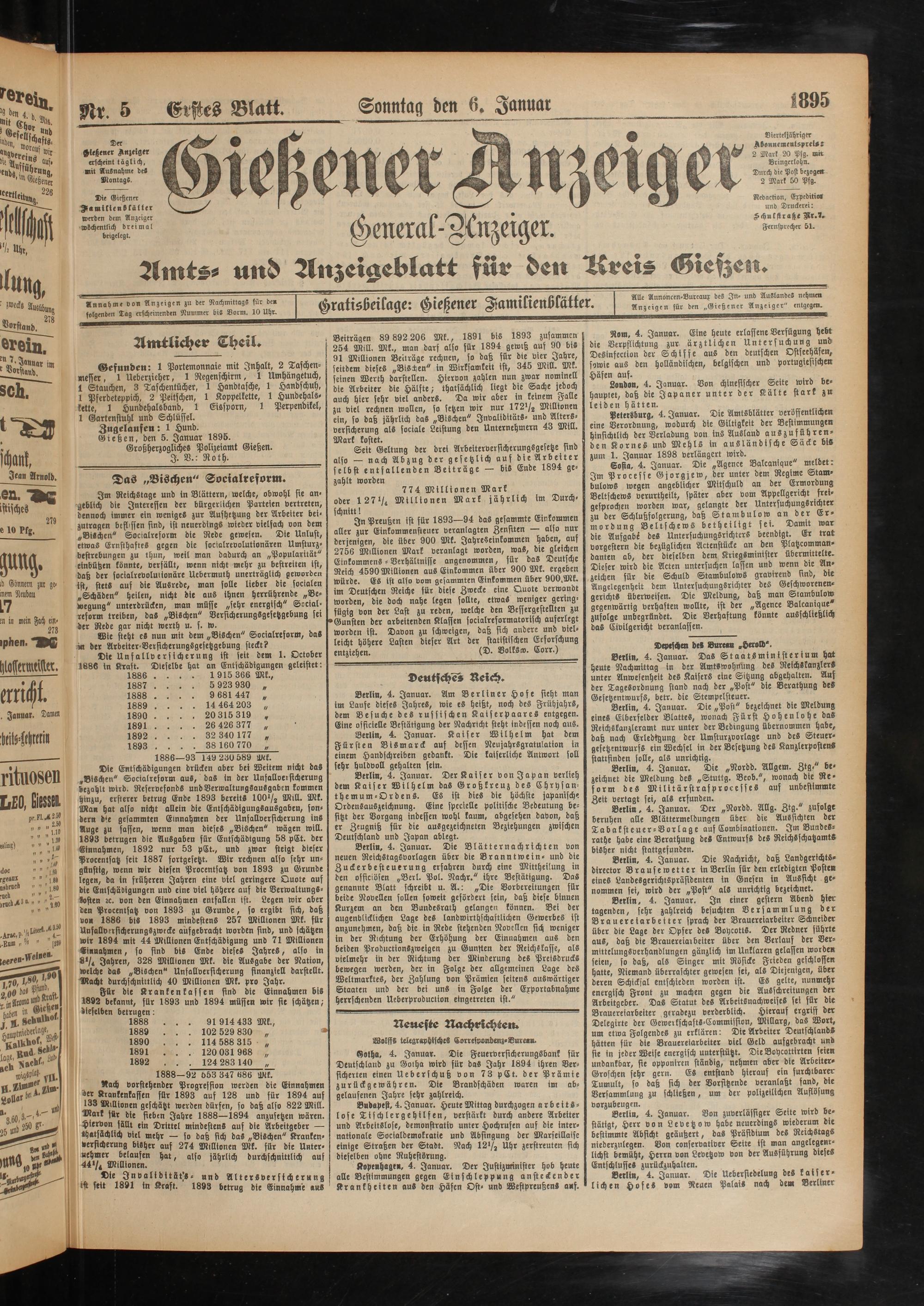 6.1.1895 Erstes Blatt