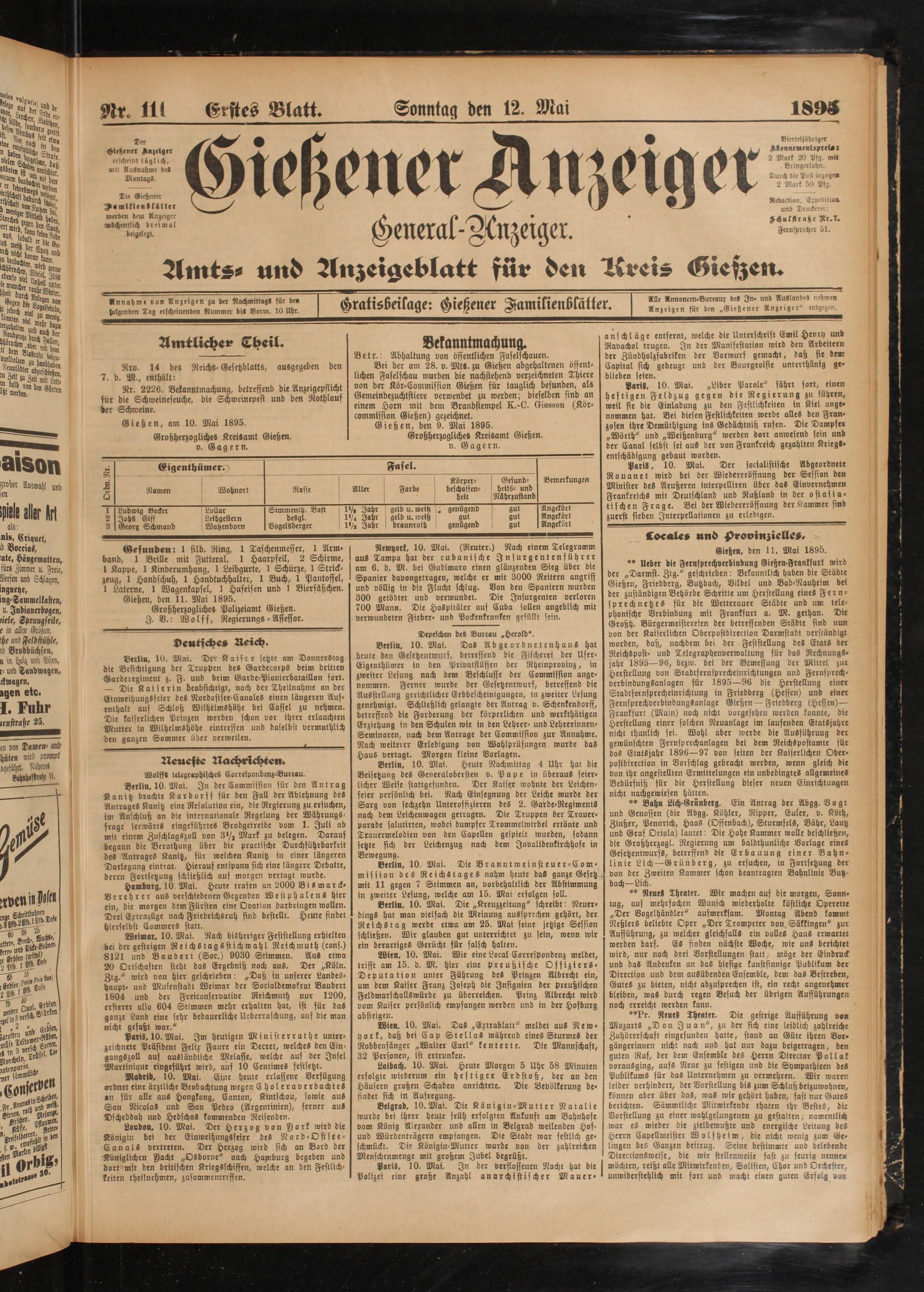 12.5.1895 Erstes Blatt