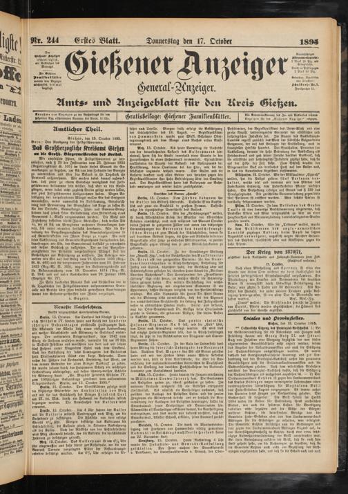 Gießener Anzeiger. 1868-1943