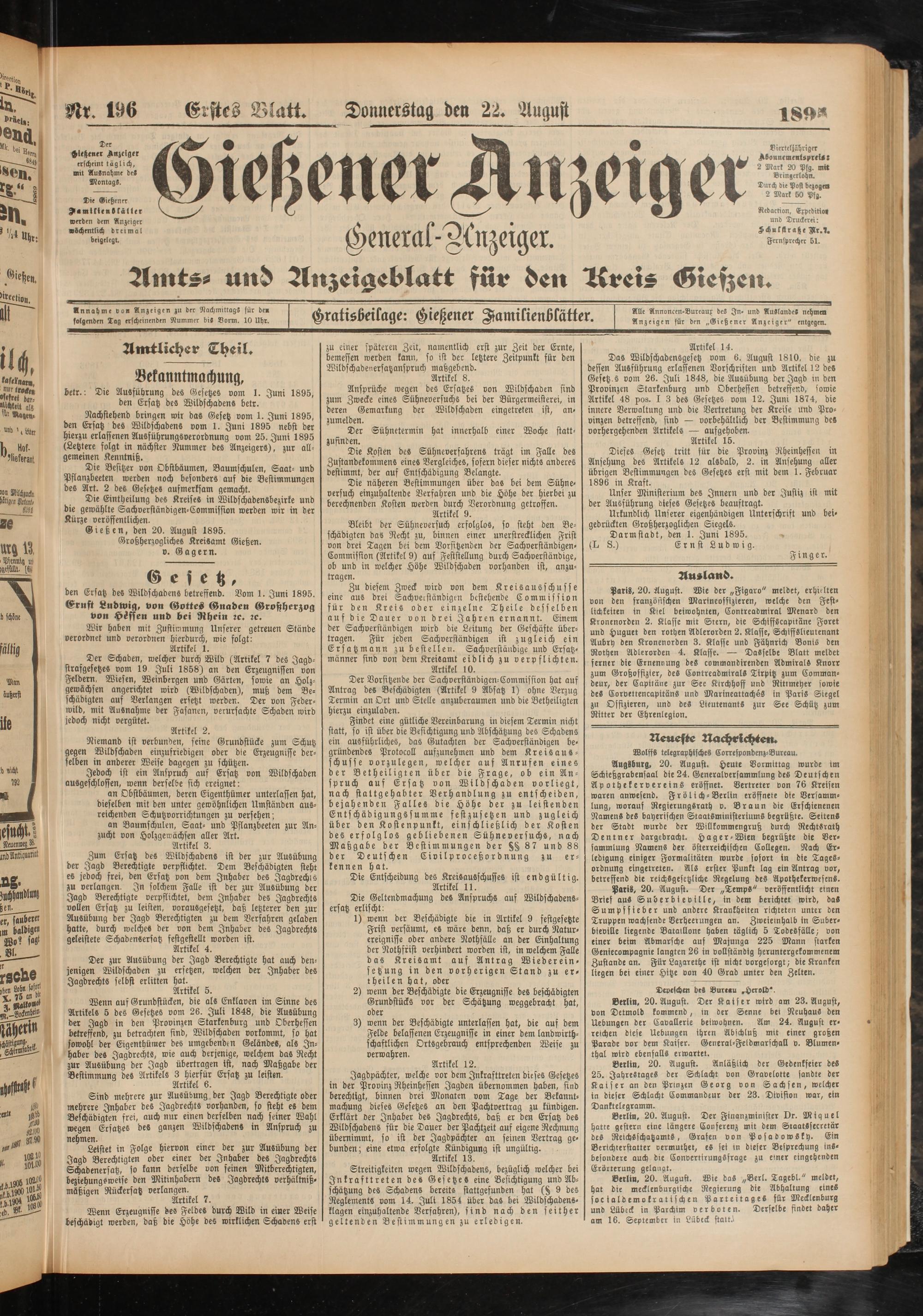 22.8.1895 Erstes Blatt