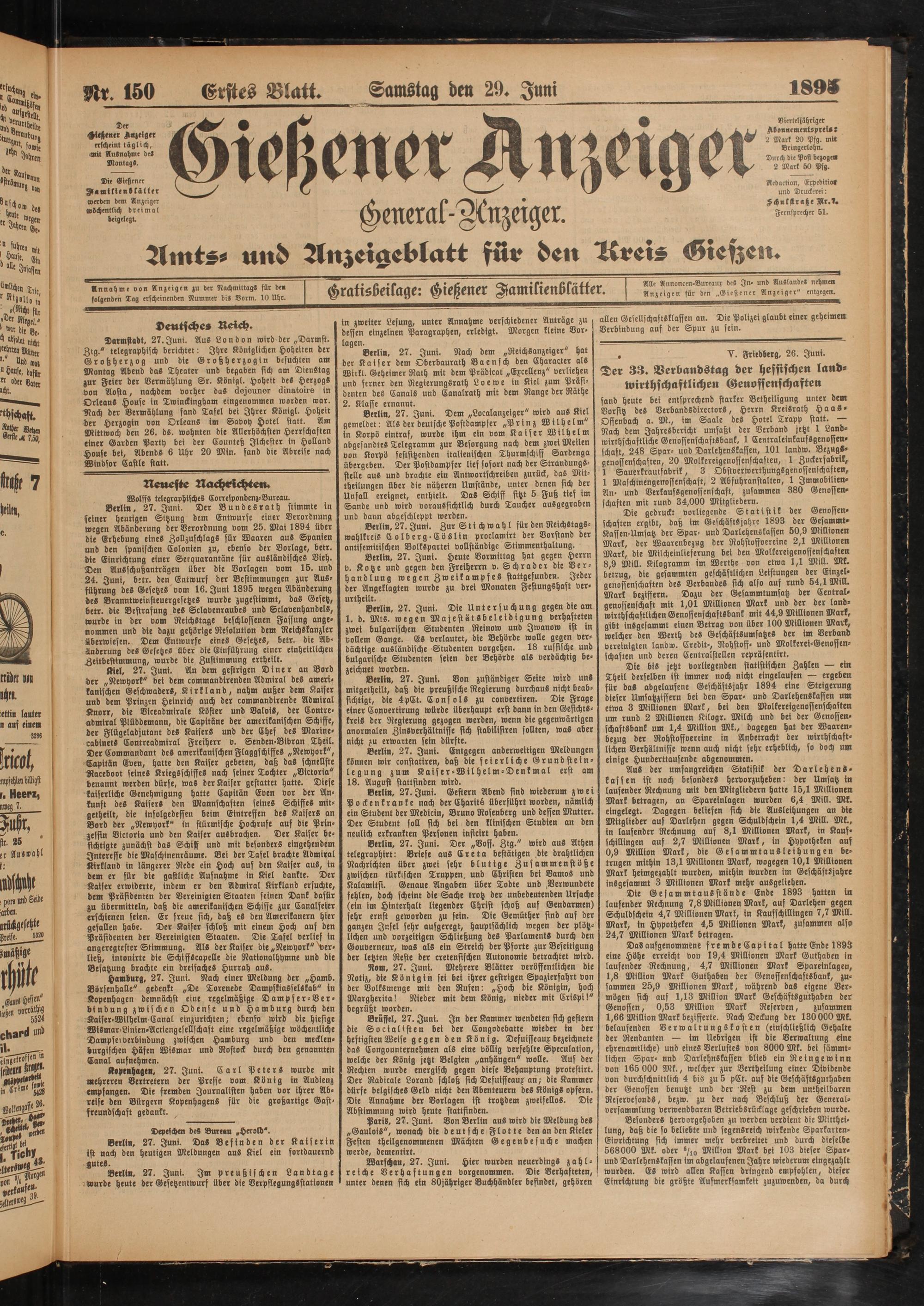 29.6.1895 Erstes Blatt