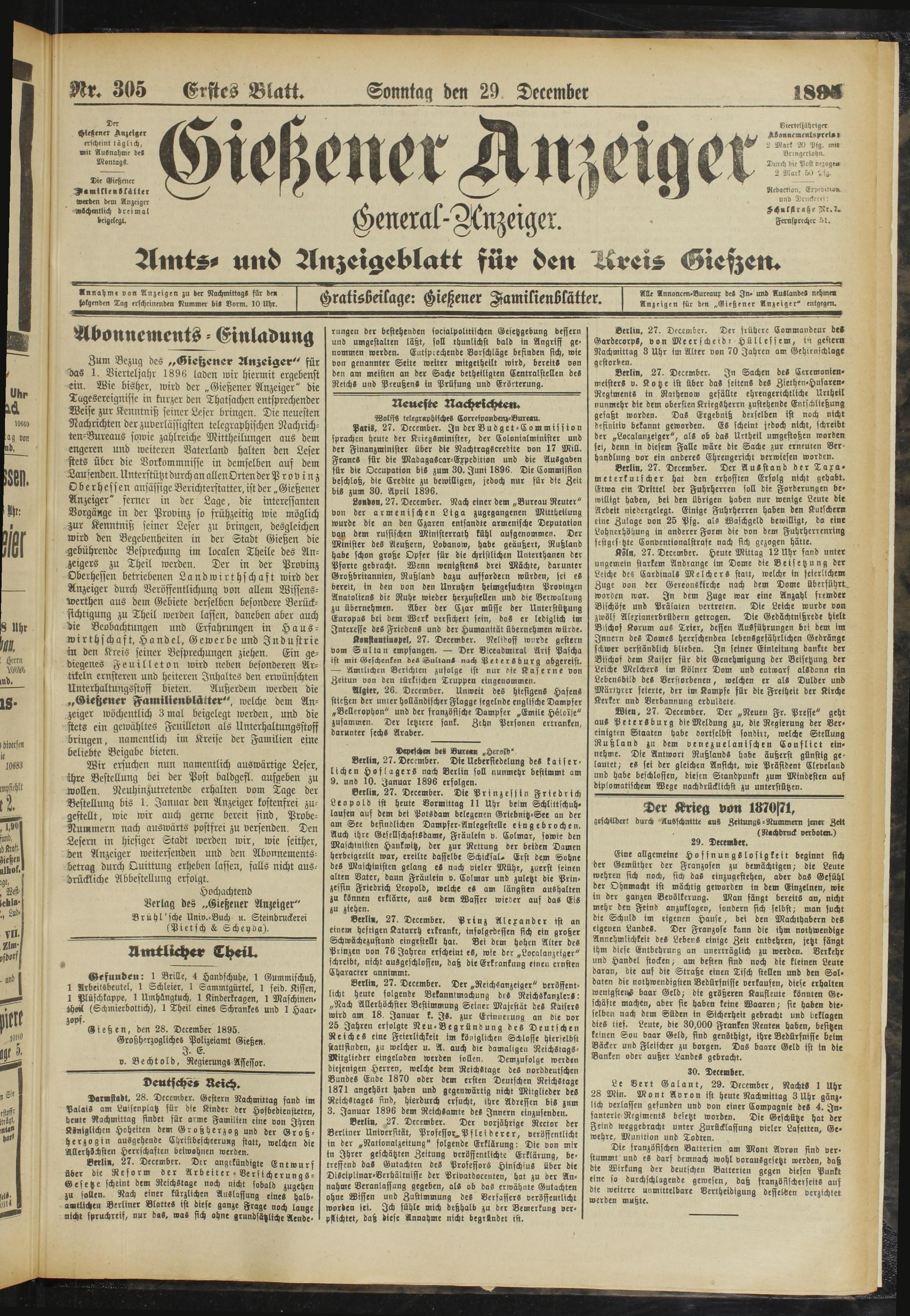29.12.1895 Erstes Blatt