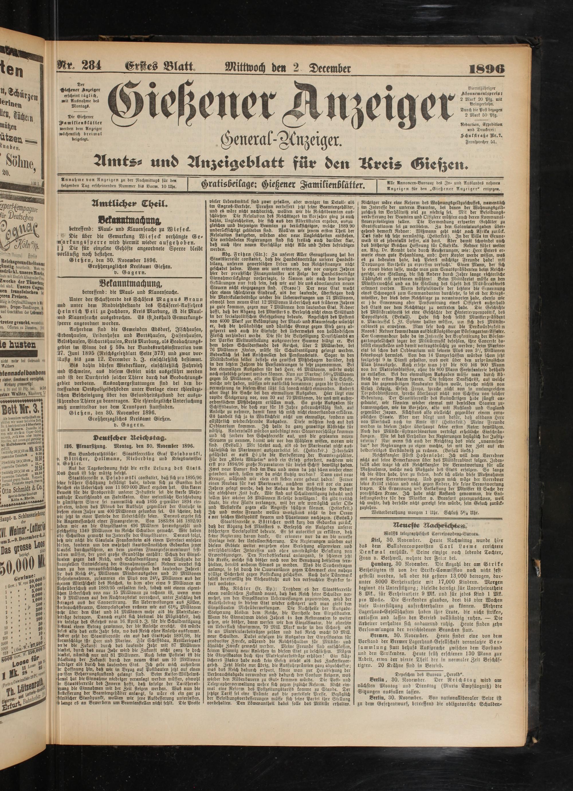 2.12.1896 Erstes Blatt