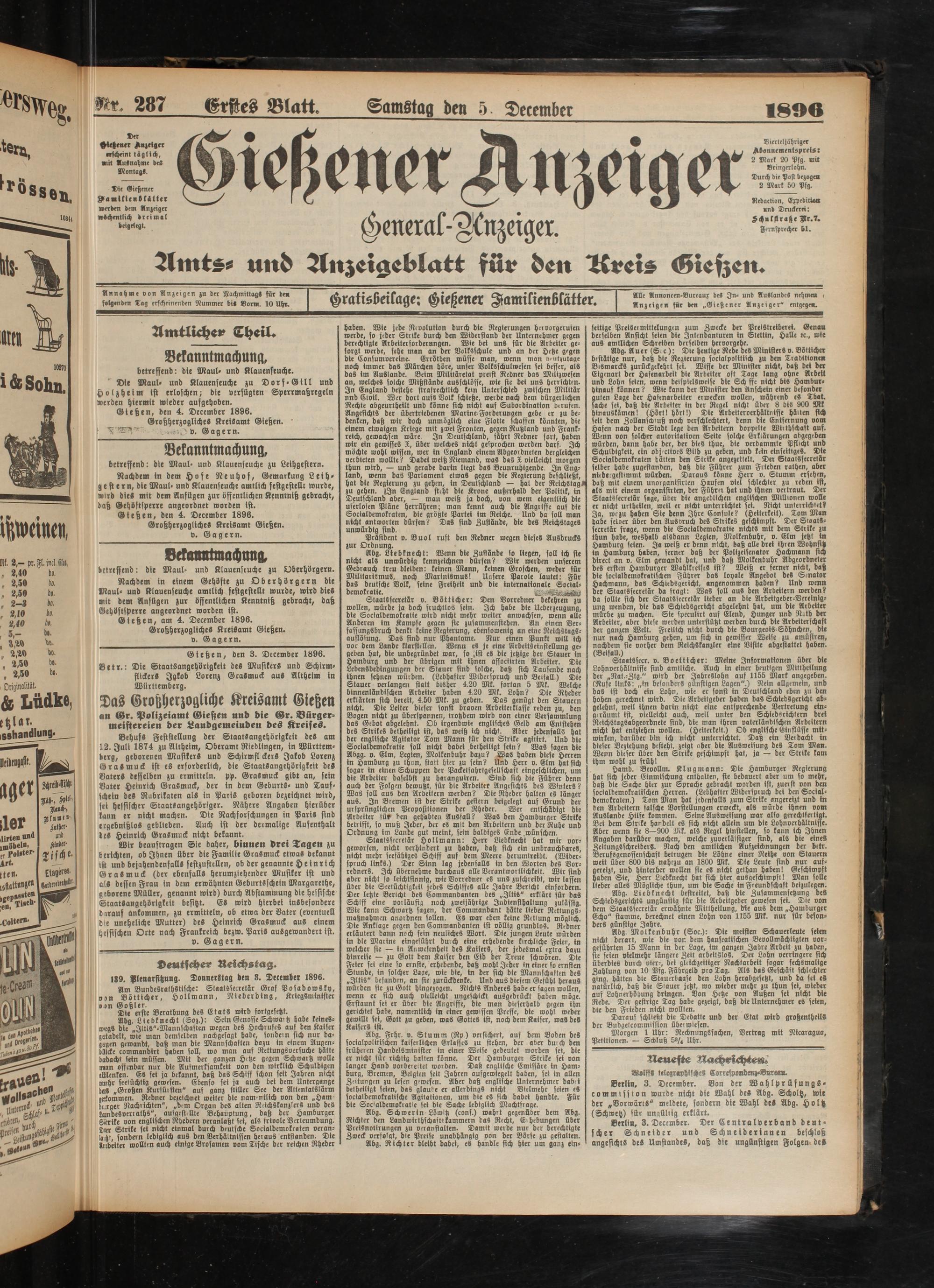 5.12.1896 Erstes Blatt