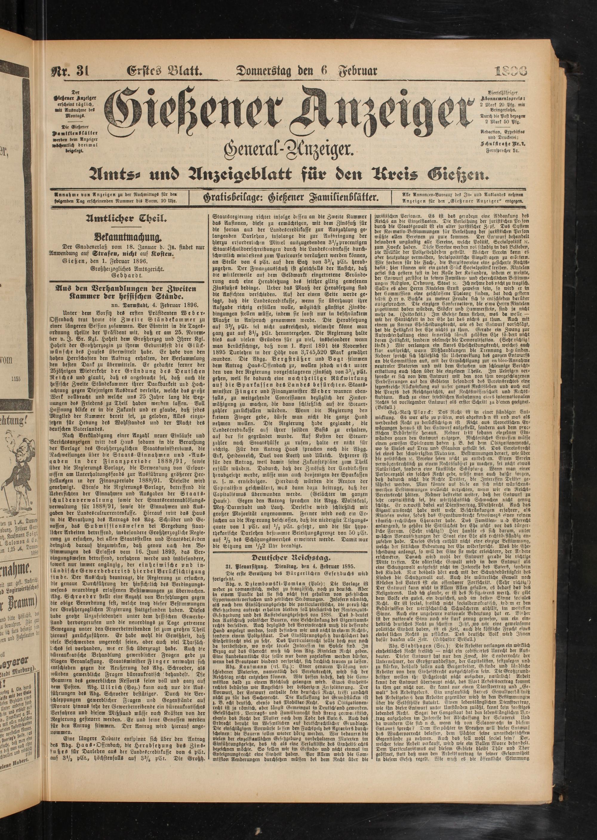 6.2.1896 Erstes Blatt