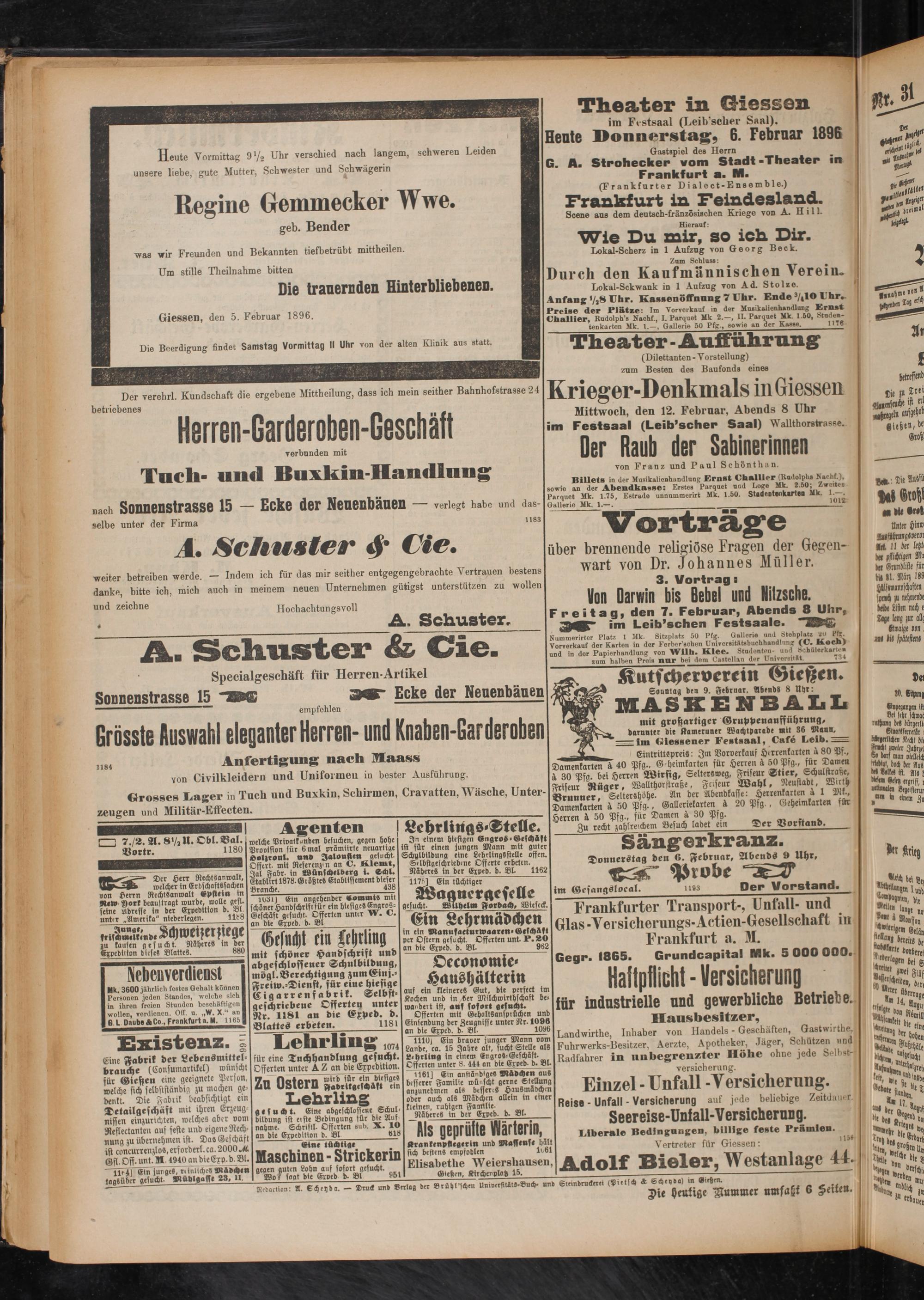 6.2.1896 Erstes Blatt