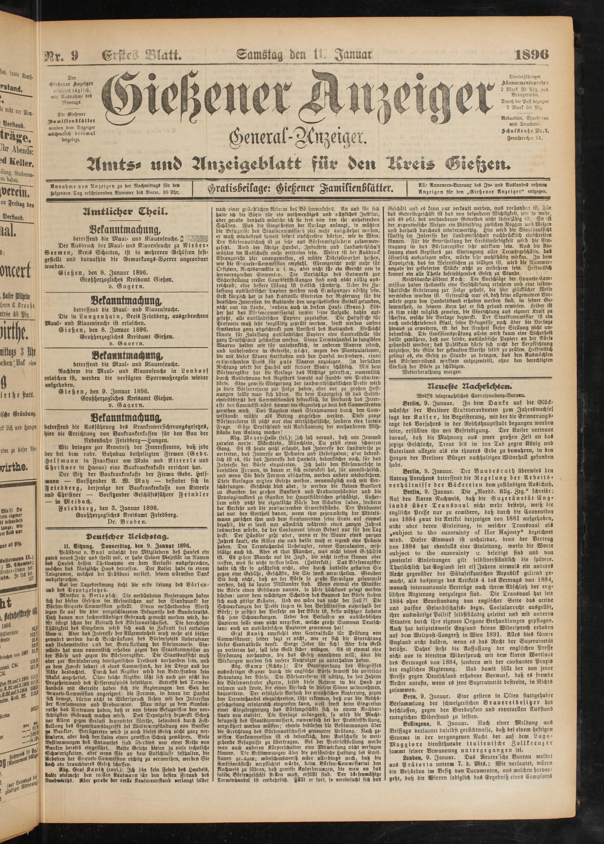 11.1.1896 Erstes Blatt