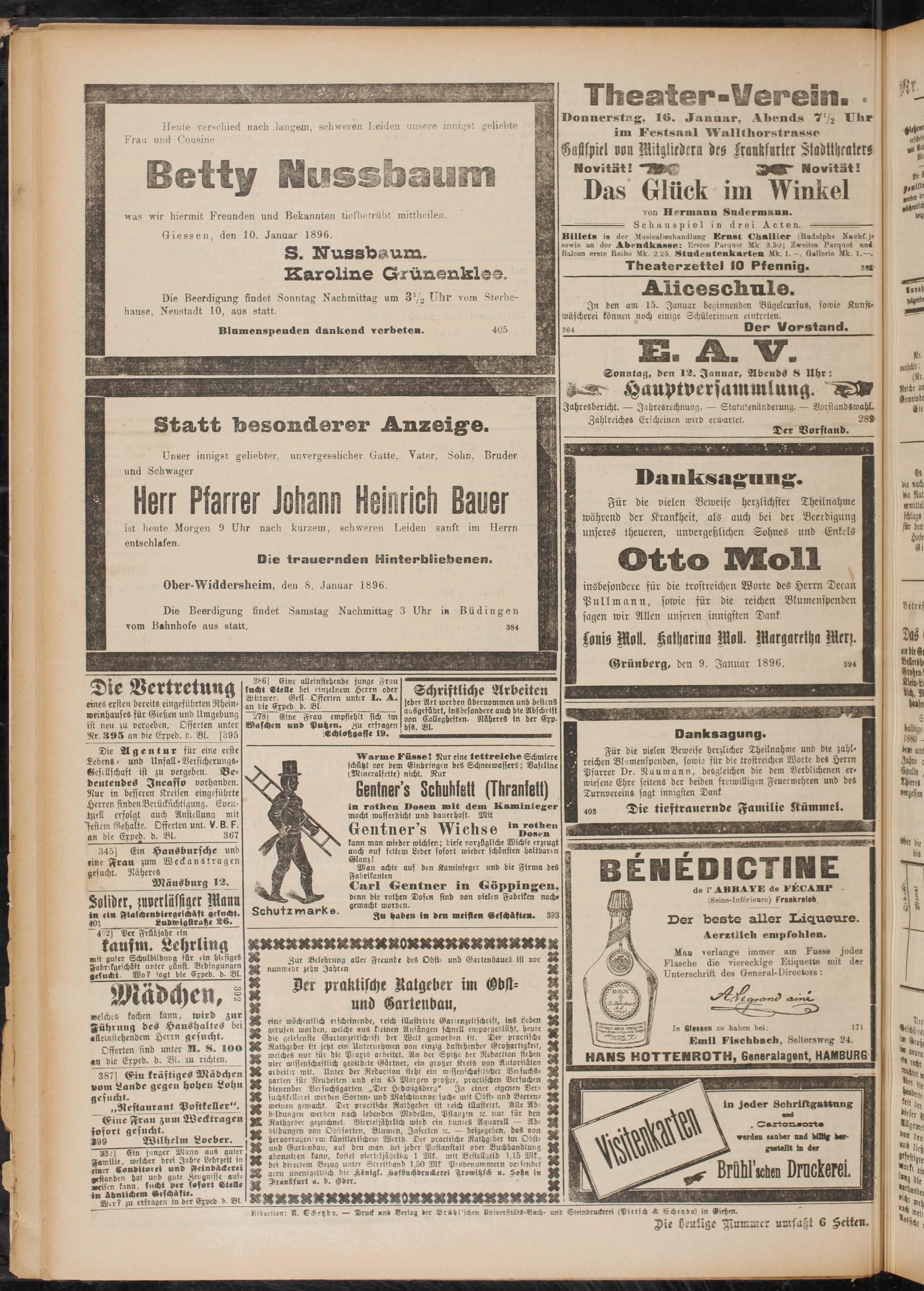 11.1.1896 Erstes Blatt