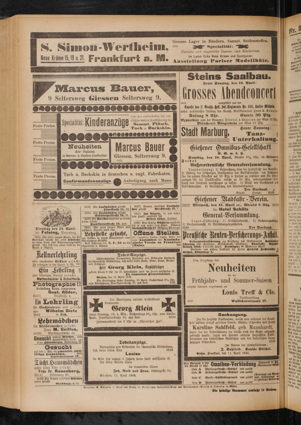 12.4.1896 Erstes Blatt