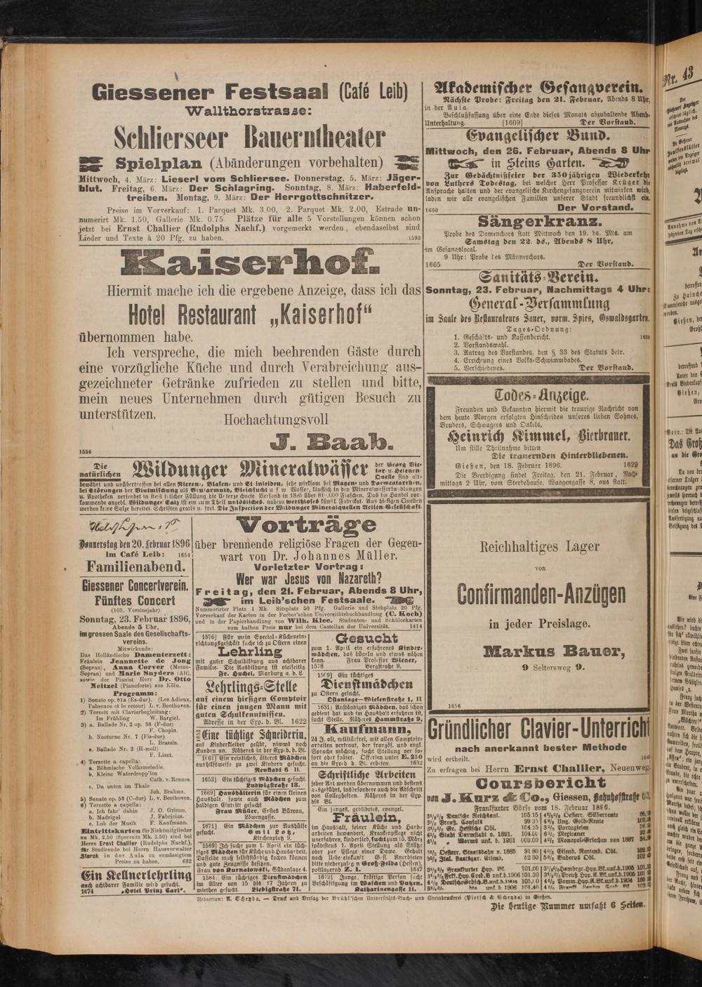20.2.1896 Erstes Blatt