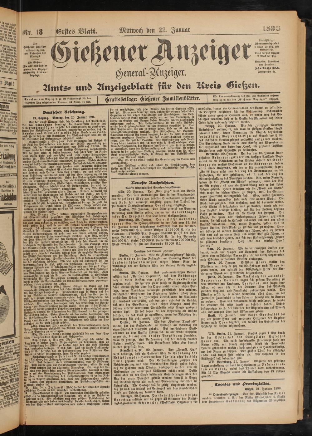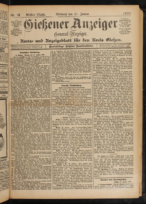 22.1.1896 Erstes Blatt