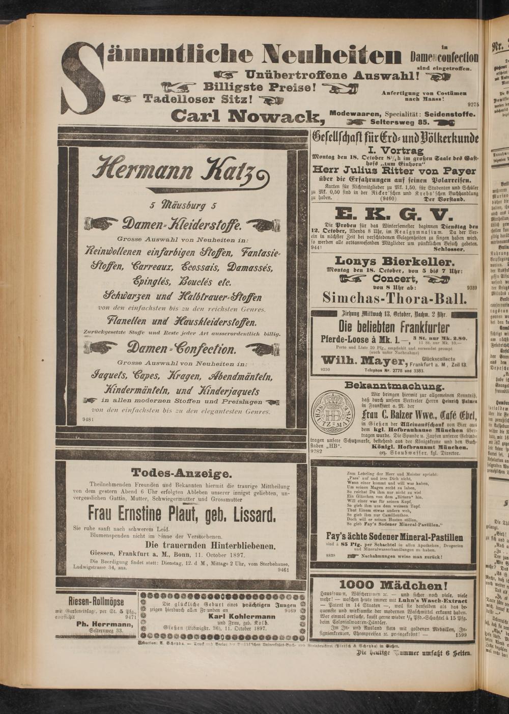 12.10.1897 Erstes Blatt