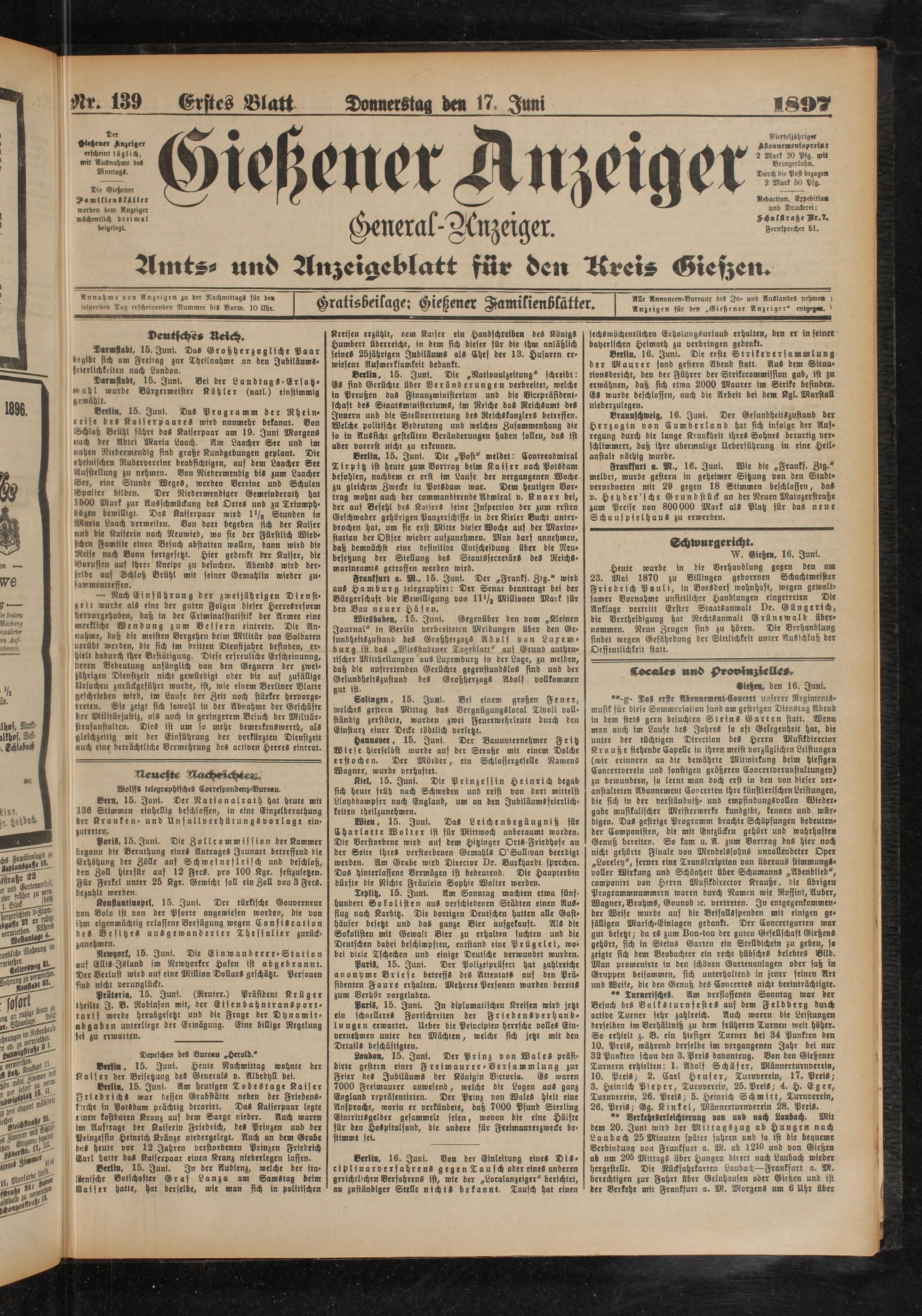 17.6.1897 Erstes Blatt