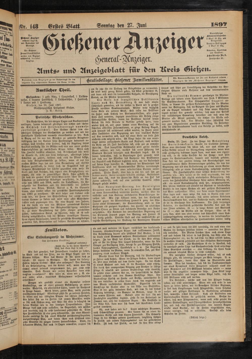 27.6.1897 Erstes Blatt