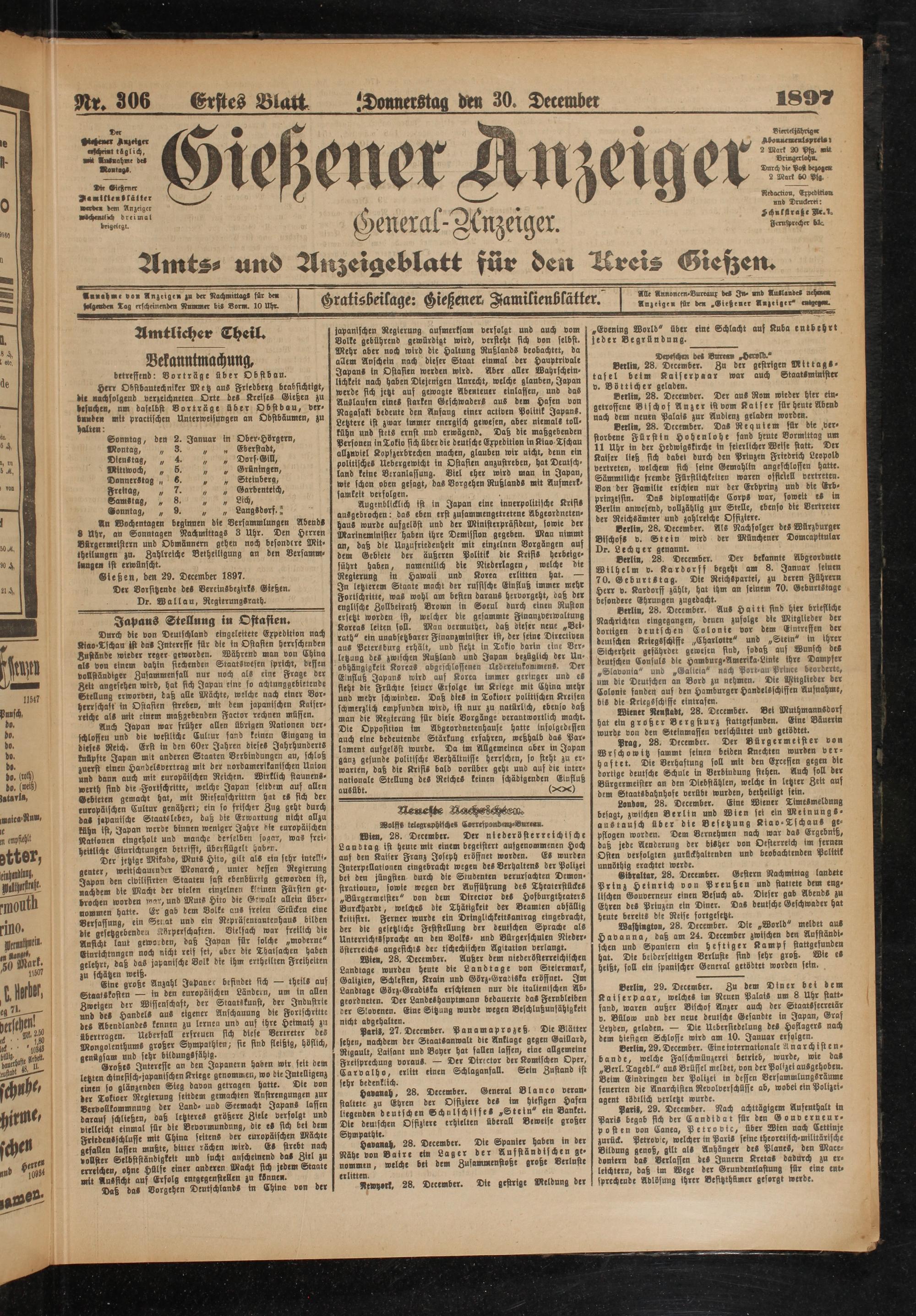 30.12.1897 Erstes Blatt