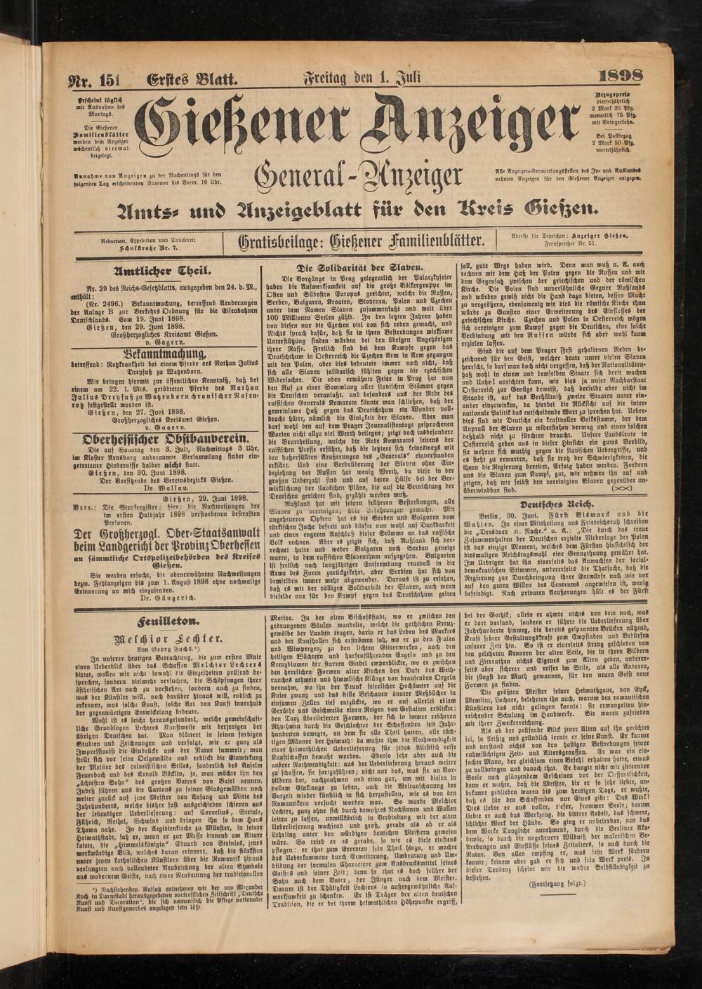 1.7.1898 Erstes Blatt