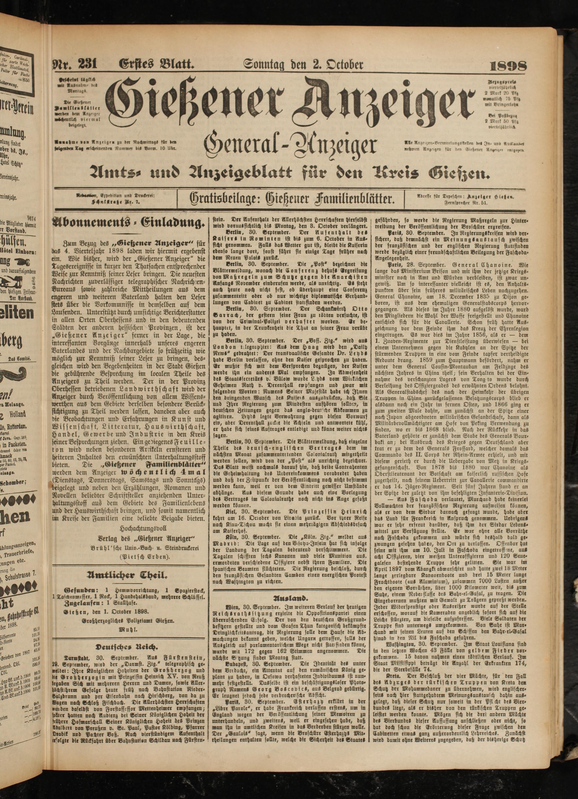 2.10.1898 Erstes Blatt