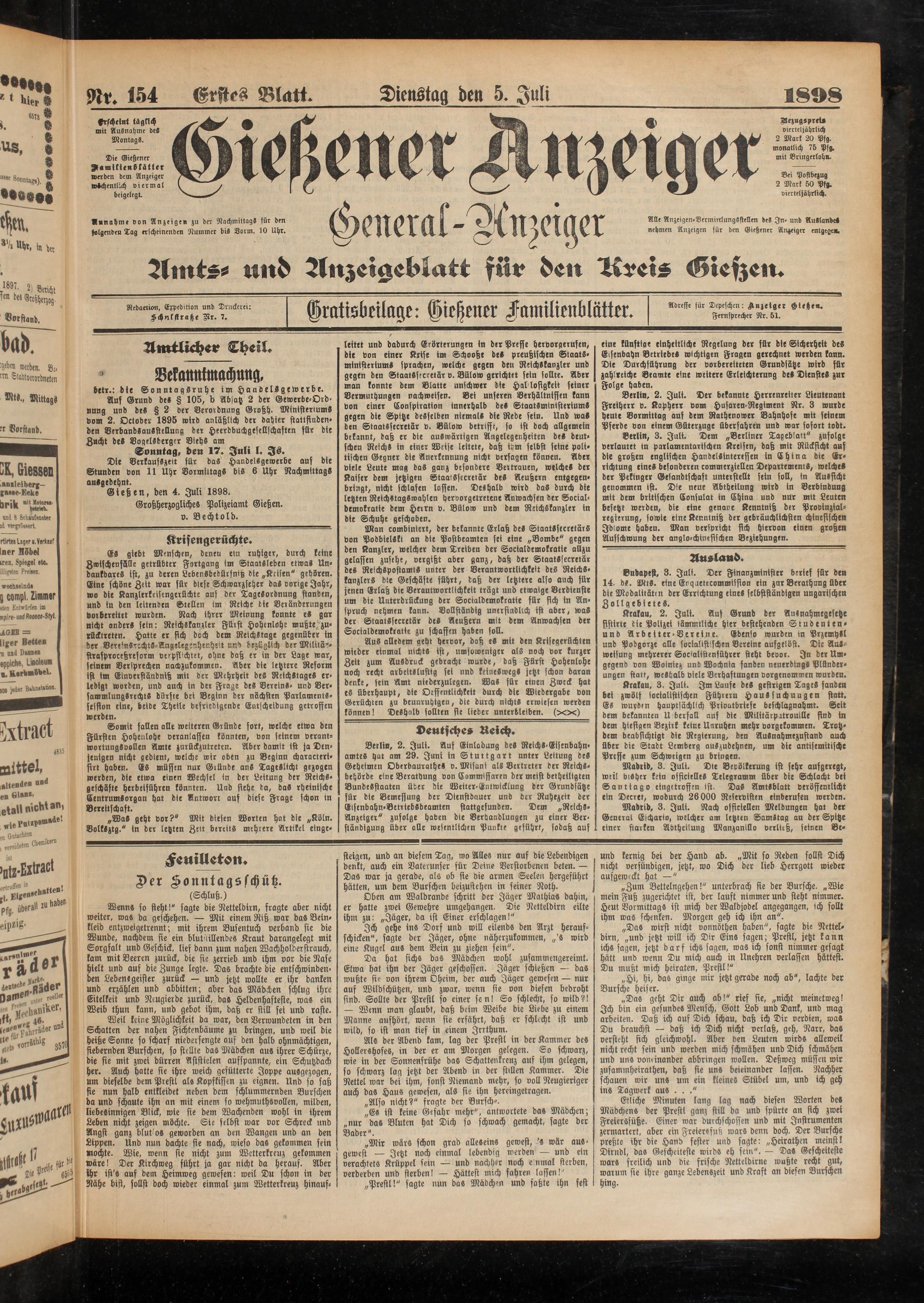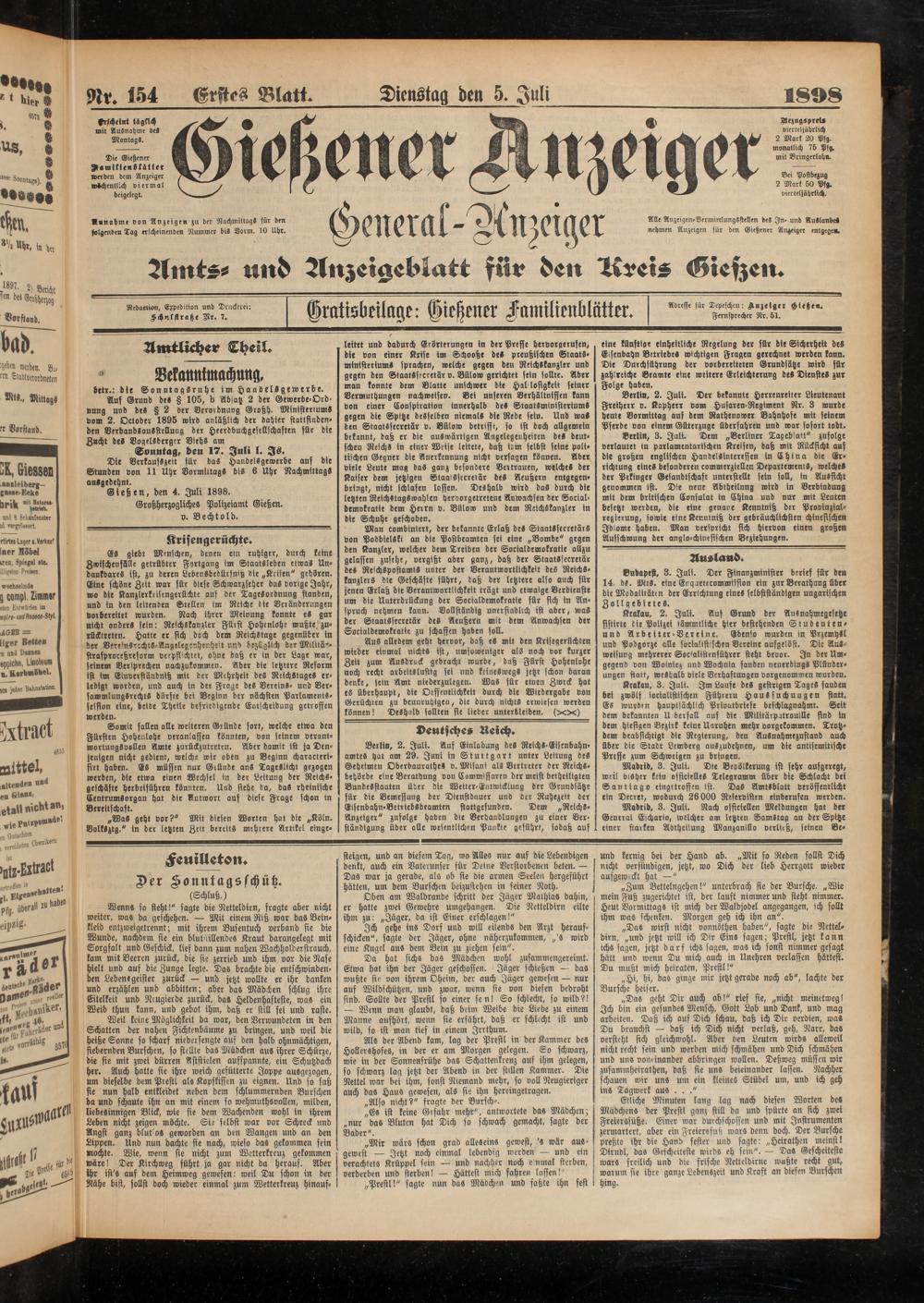 5.7.1898 Erstes Blatt