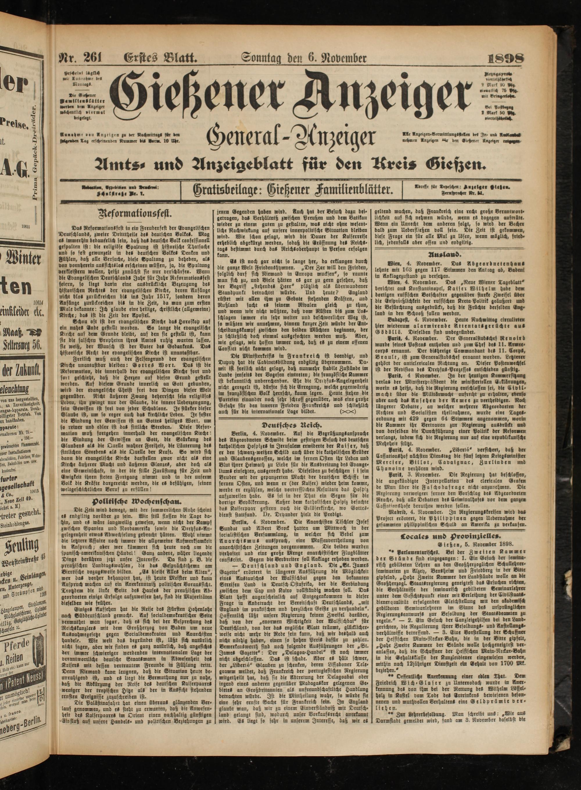 6.11.1898 Erstes Blatt