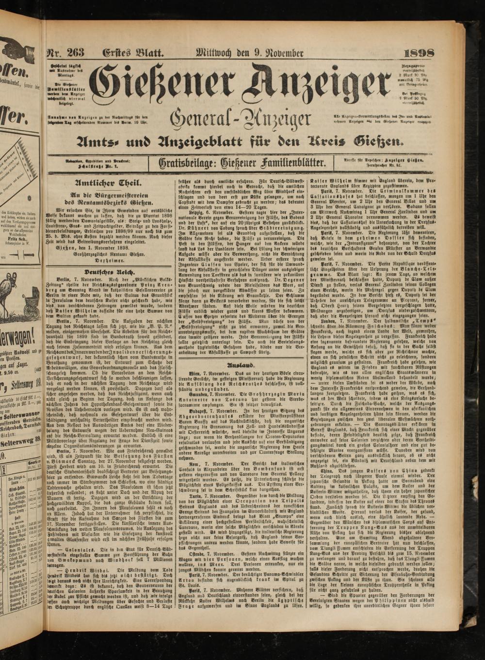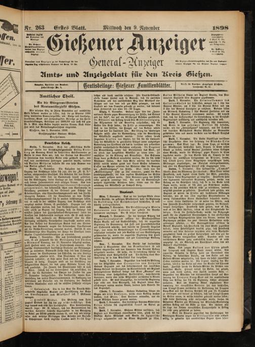 9.11.1898 Erstes Blatt