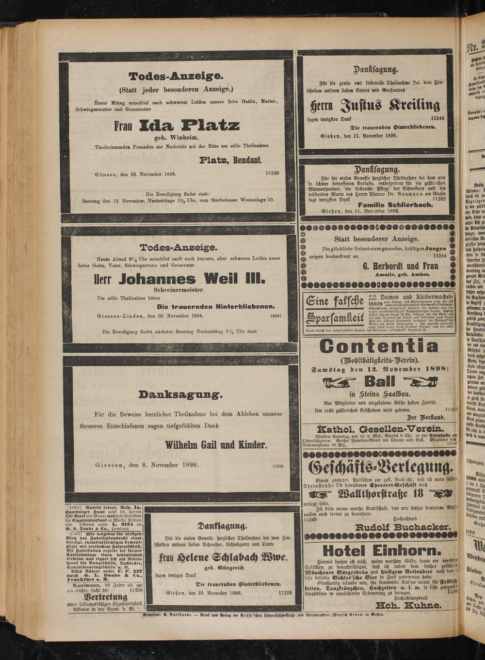 12.11.1898 Erstes Blatt