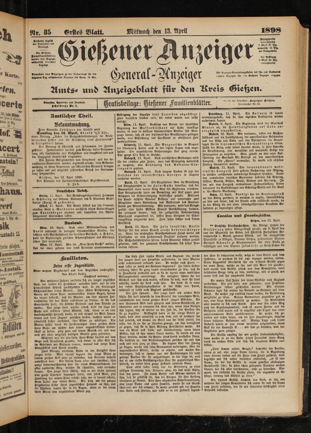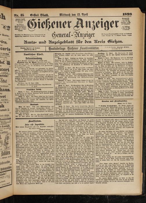 13.4.1898 Erstes Blatt