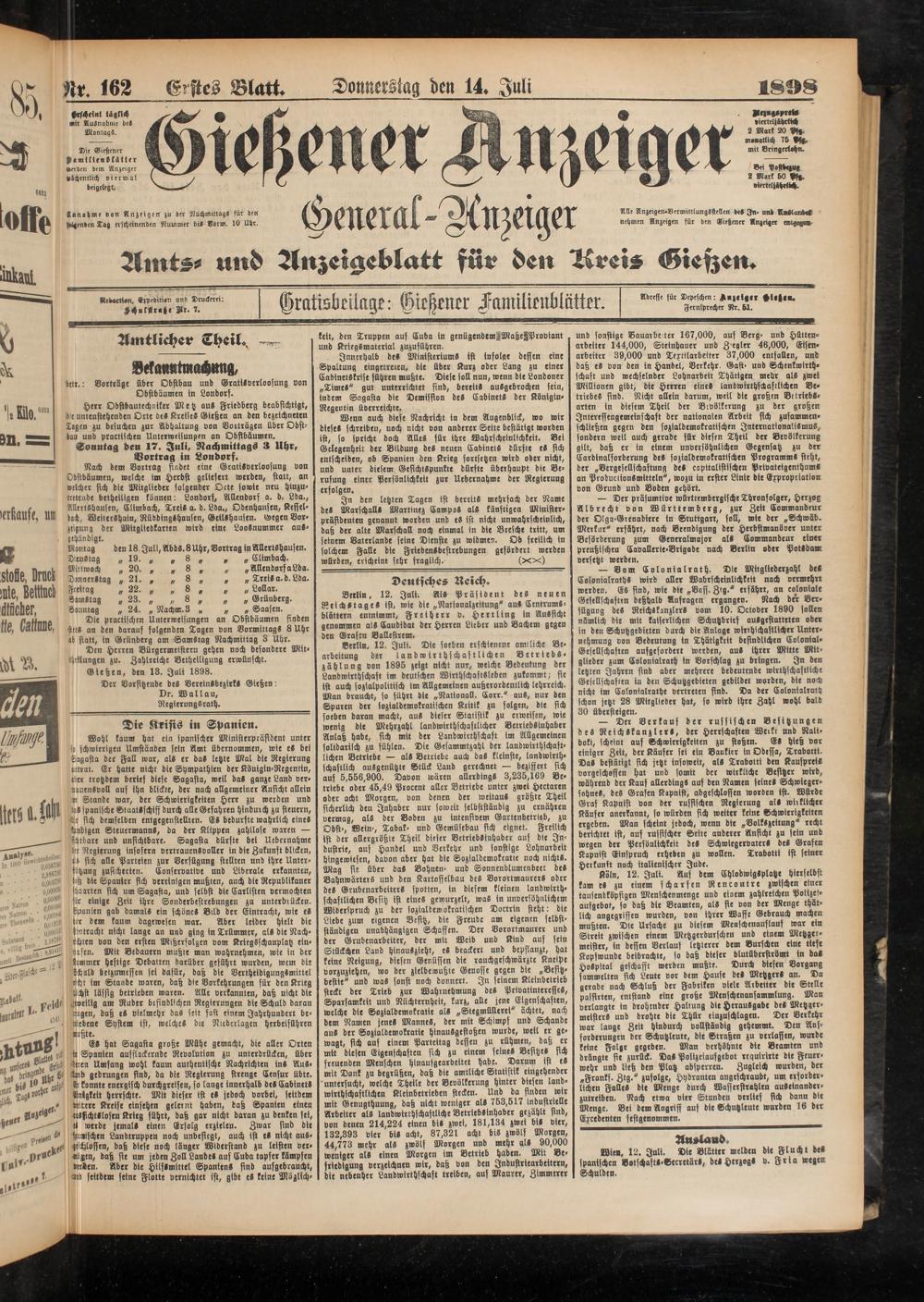 14.7.1898 Erstes Blatt